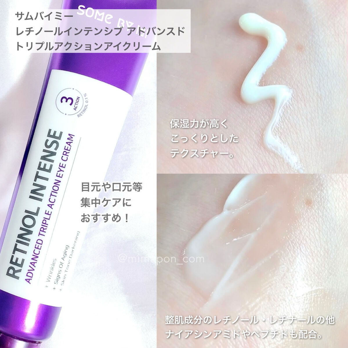 レチノールインテンシブアドバンスド トリプルアクションアイクリーム💜 ☑︎レチノール&レチナール(シワ改善ケア) ☑︎グルタチオン(ブライトニングケア) ぷるんとふっくらしているハリのある目元ケアができるよ☝🏻 濃厚なテクスチャーだけど軽くて使いやすい🙆🏻♀️ ベータパンテノールクリームと一緒に使えばガラス玉肌目指せるよꕀ💎💜💙