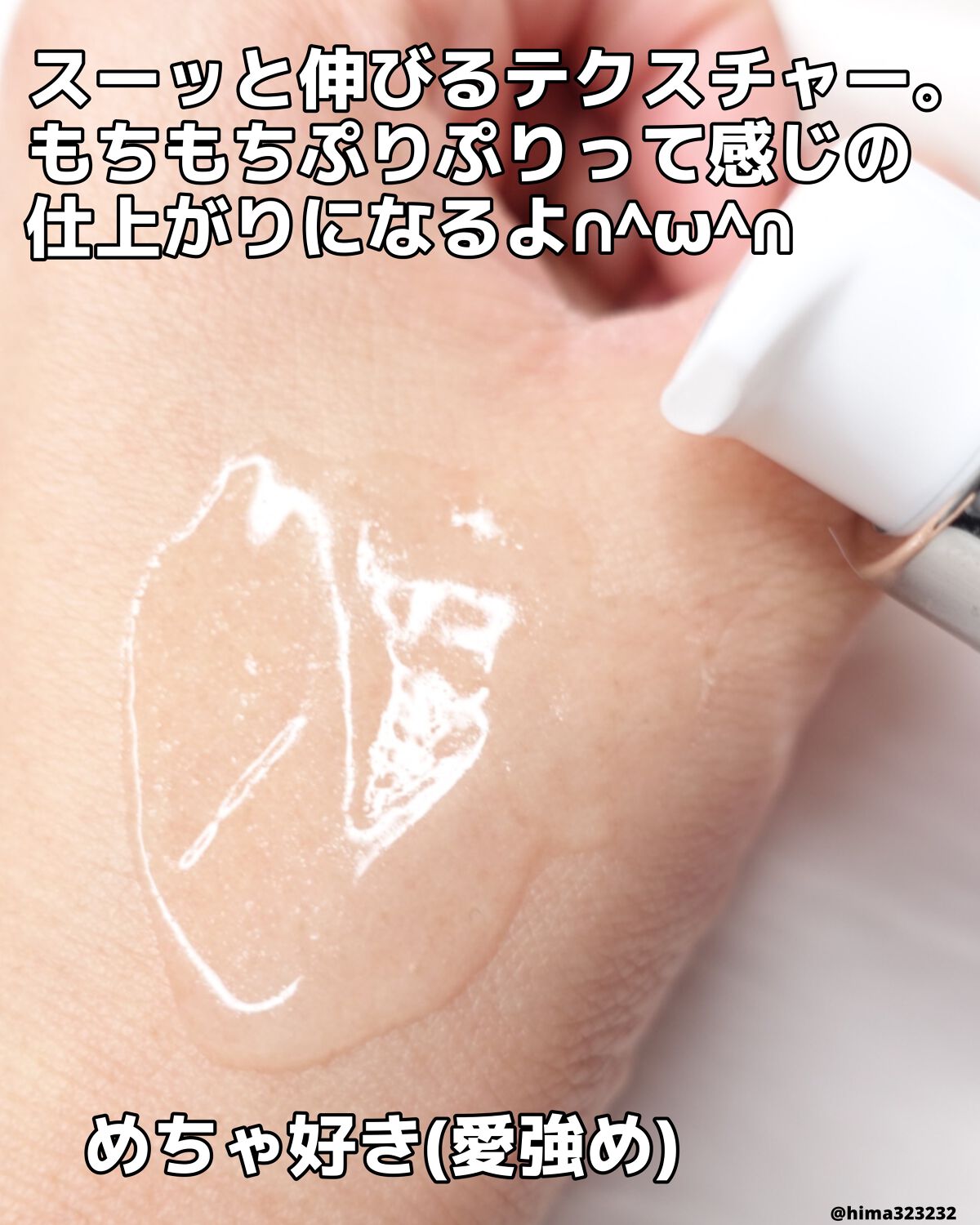 まるで濃厚美容液みたいな日焼け止め🥰 キシキシ感や白浮き、日焼け止め塗ってる感は全然なくて🫶🏻 密着感があって、ハリのあるツヤ肌仕上がり💜 保湿力も高めと思う! 紫外線ケアはもちろんのこと肌の熱が上がるのも防いでくれるんだって😭💕
