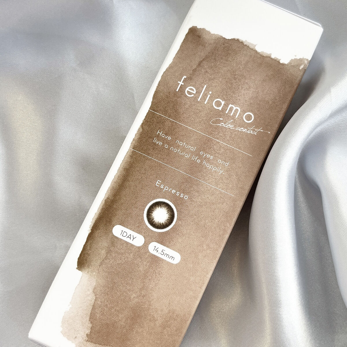 - ※2025年6月以降、商品パッケージ裏面・側面の一部表記を順次変更いたします。尚、これにかかる商品の交換・返品は承っておりません。 どんな瞬間にも溶け込む誰からも愛される瞳へ feliamoの由来は felice amore~幸せな愛~ 瞳から愛されオーラを放つ好印象レンズで女性らしさと品を演出。 オンも、オフも、特別な日も。 どんな場面にも溶け込むレンズラインナップで誰からも愛される瞳に。 UV CUT Feature1 肌や瞳に有害といわれ、白内障などの眼病を引き起こす危険性のある紫外線を99%カットします。(UV-A波75%、UV-B波99%カット) イオン性 Feature1 水分を多く含み酸素を通しやすいため瞳にやさしい使い心地で、快適な装用感です。 高含水 Feature1 水分が多く含むやわらかい素材で、快適なつけ心地です。 レンズ構造 Feature1 まぶた側に着色剤を内包しているため、角膜に色素が触れることがない構造を採用しています。 レンズ形状 Feature1 フチを丸みのある形状にすることで自然な装用感を実現しました。 ※装用感には個人差があります。 カラーコンタクトレンズの不適正使用による眼障害の危険性等などがあります。 ●コンタクトレンズは高度管理医療機器です。不十分な洗浄・消毒など不適切なケアや、長時間・交換期間を超えた装用により、アレルギー性結膜炎、角膜感染症、角膜潰瘍等の重篤な眼障害が発生する危険性があります ●ご使用前に取扱説明書を確認してください 使用上の留意事項 ●眼科医院等を受診してからお求めください ●眼に異常を感じたら直ちにレンズ使用を中止し、お近くの眼科等で診察を受けてください ●医師の指示にしたがってご使用ください ●コンタクトレンズを装用する場合、自覚症状がなくても、眼科医院等での定期検査を受けてください ●レンズに不具合がある場合は使用しないでください