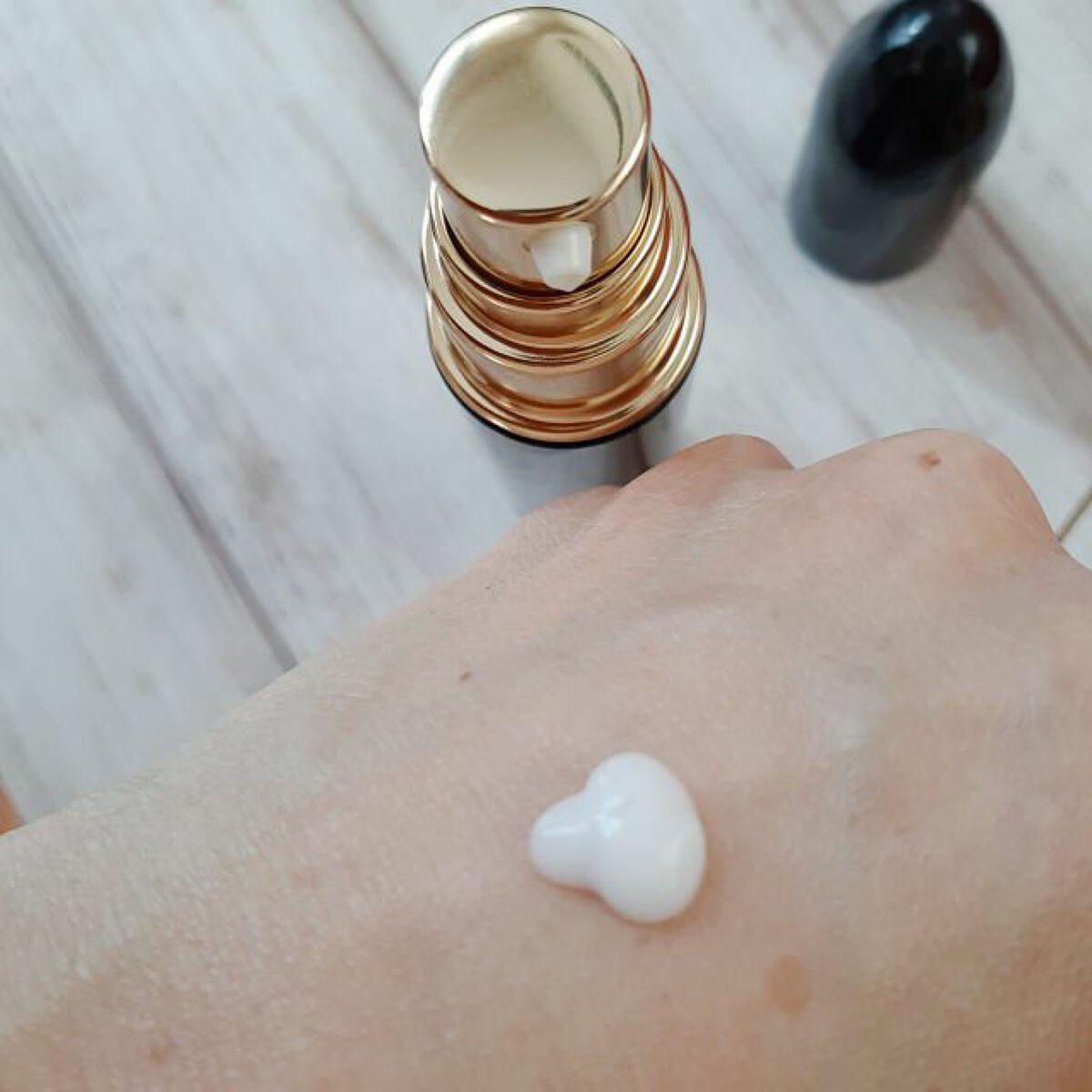 さらっと乳液みたいな感触のうすいピンク色の美容液です。 伸びが良く、きしみは気になりませんね。 なじんだ後はしっとりなめらかで、使い心地が私の好みです。 軽い感触で、べたつかず、白浮きすることもないので、朝ファンデの前に使いやすいです。
