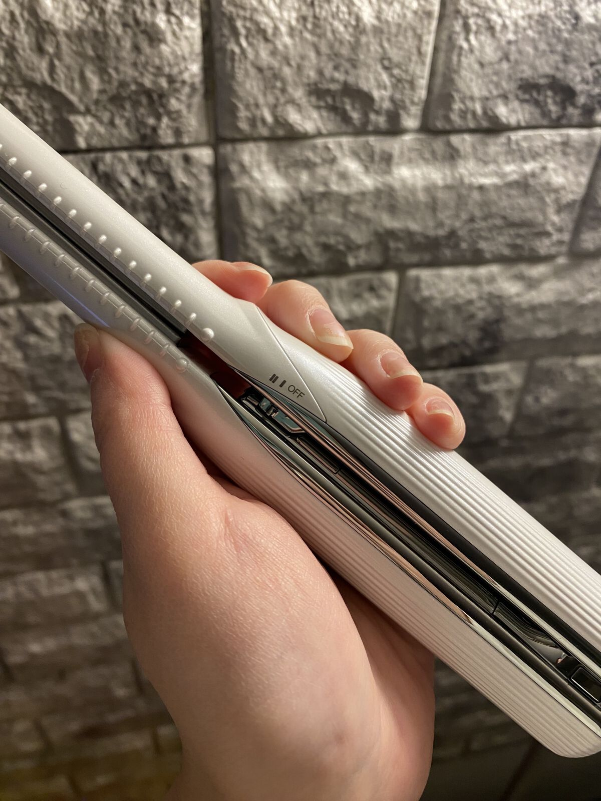 - プロの美容師がつくるスタイルのポイントは、 前髪・毛先・トップの「毛束1cm」を操り生み出す、絶妙なニュアンス。 リファビューテック フィンガーアイロンは、 そんな美容師の指先の細かい動きを 誰もが再現できるようつくられています。 ニュアンスを操り、 こだわりのヘアスタイルへ。 商品名 ReFa BEAUTECH FINGER IRON リファビューテック フィンガーアイロン 品番 RE-AI02A(ホワイト) RE-AI03A(ブラック) RE-AI05A(ピンク) 電源 内蔵充電池充電時:DC5V、0.5A USB給電ヒーター作動時:DC12V、3A 消費電力 約36W プレート温度 2段階(20°C間隔)約160°C、180°C サイズ 約191mm×37mm×29mm(キャップ含まず) 充電用USBケーブル長さ 約1.0m 重量 約160g(キャップ、充電用USBケーブル含まず) 材質 PET、ポリカーボネート、スチール、炭素 同梱品 付属品 キャップ、充電用USBケーブル、取扱説明書、保証書、ギャランティーカード 推奨使用環境温度 5°C~35°C 製造元 株式会社MTG(日本)原産国:中国 ・本品の性能向上のため、仕様の一部を予告なく変更する場合がありますのでご了承ください。 ・本品は、日本国内にて、企画、開発を行っています。 ・「ReFa」は、(株) MTGの登録商標です。 Refa製品の不良や故障に関しては、下記にお問い合わせください。 ================== MTGお客様お問い合わせ窓口 フリーダイヤル:0120-315-332 受付時間8:00~20:00(年中無休) ※携帯電話・PHSもご利用いただけます。 お問い合わせフォーム:https://www.mtg.gr.jp/feedback/individual_inspection.html ==================