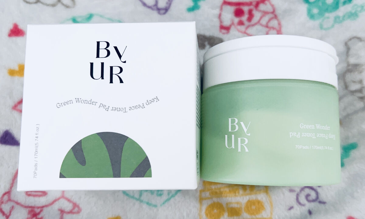※2023年使用品トナーパッド・商品名ByUR(バイユア) スージンググリーントナーパッド ビタギビングトナーパッドサンプルエンボス加工なしの薄めパッド拭き取りより部分パック向きかな保湿力はしっかりなイメージ...