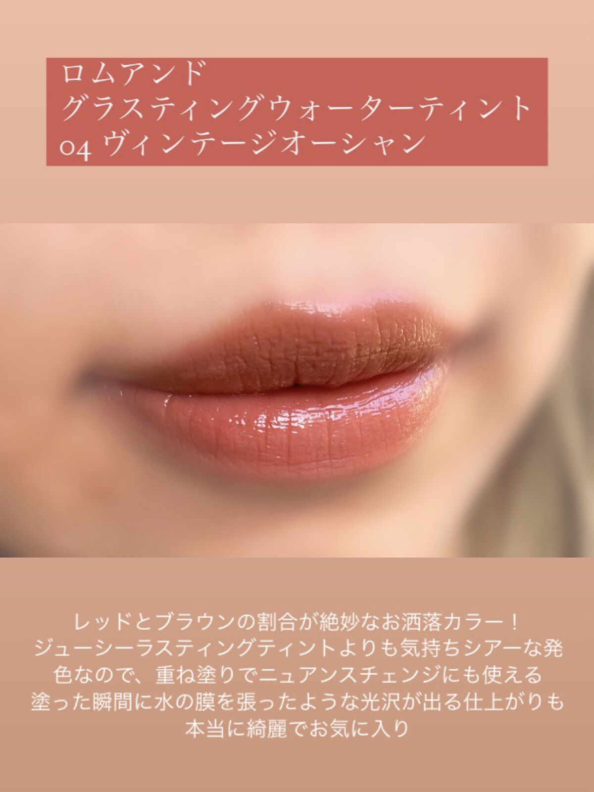 LAKAフルーティーグラムティントから、新色カフェインローズが発売されました 新色はダークなお色味🥀 赤みがやや強めのレッドブラウンカラーのリップ 濃く重ねることでブラウン味が強くなっていき、唇に一気に存在感が出て、華やかな雰囲気に仕上がります 少し重ための液で、ぷっくり感やうるうる感の演出もテクニックいらずなので、メイク初心者さんにも◎ カラー・塗りやすさ・仕上がり・付け心地 どこを取っても完璧! モードっぽく仕上げたいときや、強めのメイク・服装に合わせたいリップです🖤 「ロムアンドのジューシーラスティングティント20ダークココナッツと似ている」とちらほら聞くので、比較してみました どちらも色味としてはレッドブラウンカラーですが、強いて違いを挙げるなら、LAKAは赤みがほんのり強め/ロムアンドはブラウン味がほんのり強めな気がします 使用感も割と近いと感じました 気持ちロムアンドの方がサラサラしてるかな?LAKAの方はいい意味でもったり感があって塗りやすい! どちらも人気の理由が分かります◎