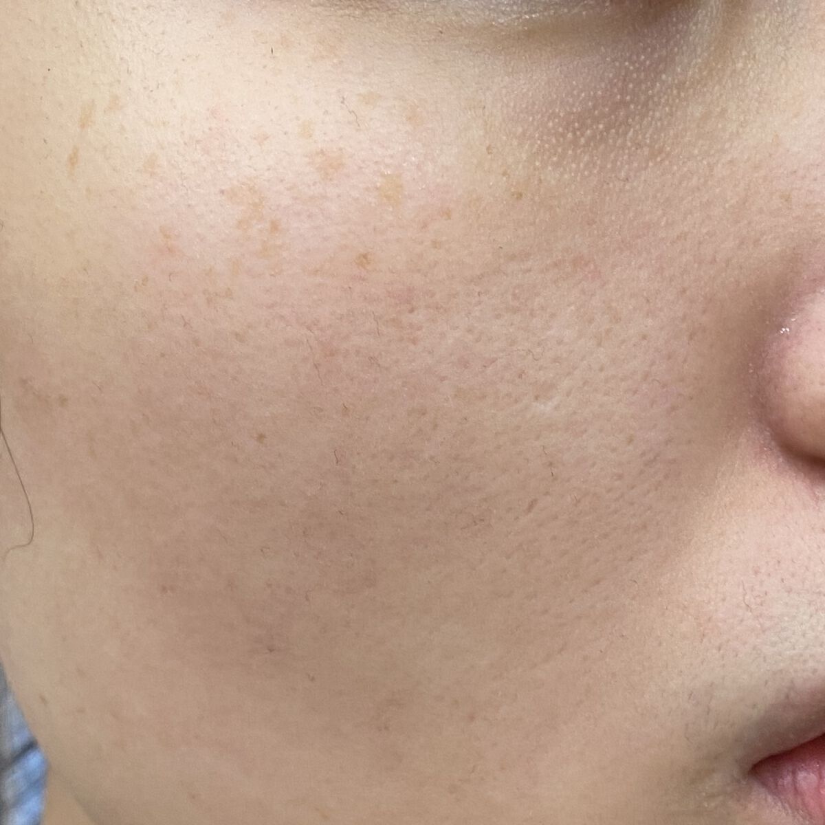 トーンアップするか否かの確認が漏れていて、無色透明のつもりで購入。開封時にパッケージを見てトーンアップやん!?!?となりました。しかしトーンアップと言っても艶で明るく見える程度の仕上がりで好みでした。 無色透明の方がベースメイク前に仕込むのに使いやすく、そのまま首やボディも塗れちゃうので手軽なんですよね。 塗りたては少しべたつくものの、時間が経つとベタつきは感じずしっとりとした触り心地に。