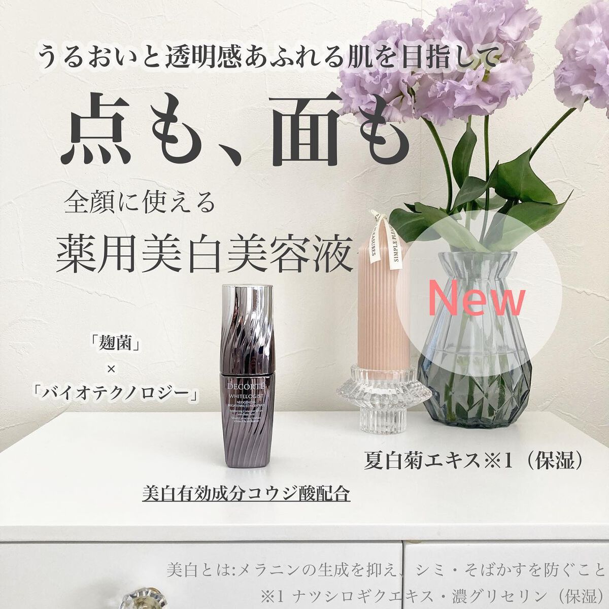 「麹菌」✕「バイオテクノロジー」徹底的なシミ対策も、顔全体の冴えた輝きも一気に輝く、全顔美白※。コスメデコルテ大人気の薬用美白美容液、ついに7代目「ホワイトロジストネオジェネシスブライトニングコンセントレイト」として進化〜!美白有効成分コウジ...