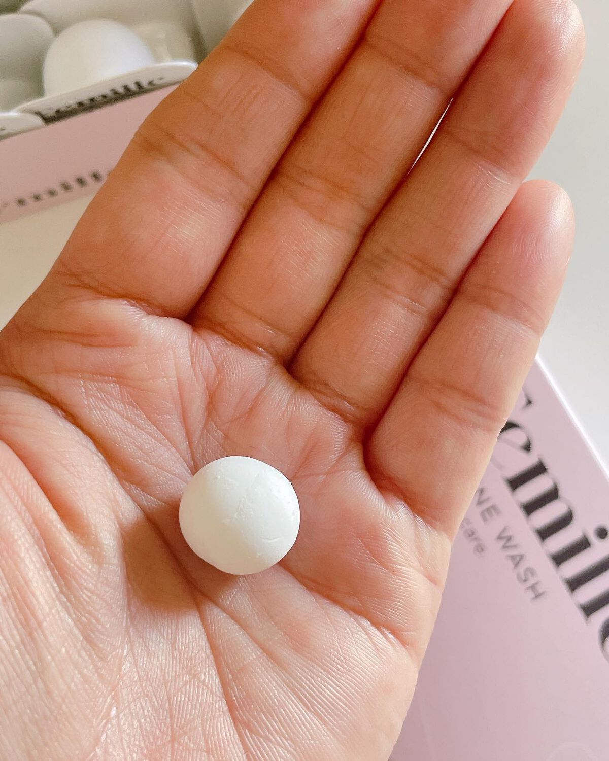 - デリケートで大切な部位に使うソープだから、無添加(防腐剤フリー・香料フリー・着色料フリー・アルコールフリー)&弱酸性処方で優しい洗い心地にこだわりました。デリケートゾーンの肌環境を整える成分(乳酸菌などの保湿成分、整肌成分)を凝縮したフリーズドライソープは、ぬるま湯をかけて泡立てると、スッと溶けて優しい泡立ちで不快な汚れやニオイをスッキリ洗い流します。コンパクトで衛生的な個包装タイプなので、お出かけや旅行などにも大変便利です。