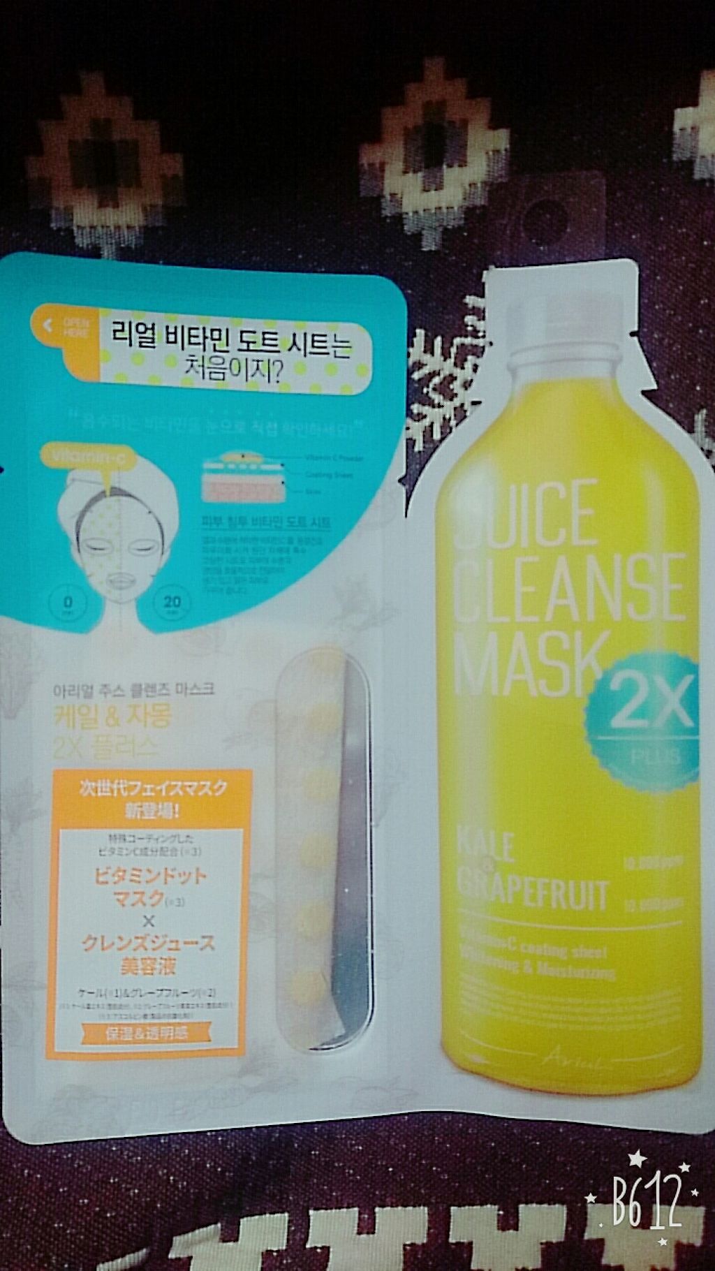 韓国製フェイスマスク★ジュースクレンズマスク2×プラスR&Lビタミンドットマスク×クレンズジュース美容液ビタミンドットは特殊コーティングしたビタミンC成分が配合されているそうで、マスクに薄いイエローのドットがあります。(画像...