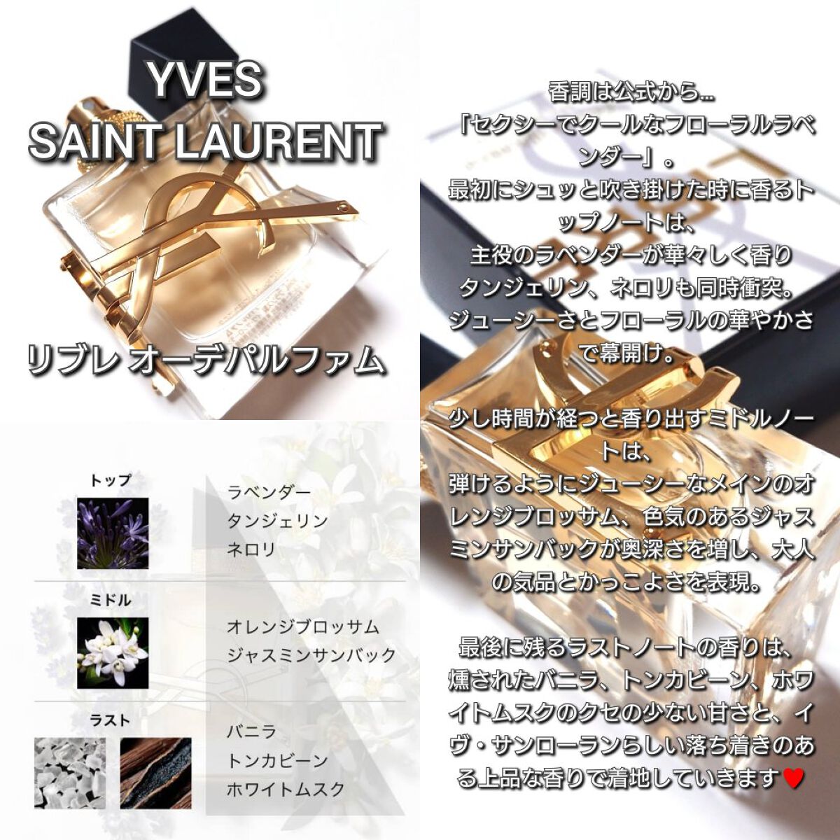 香りふぇちのお戯れ(*´艸`)ふふん♪刻を経て魅惑の香りをGET!! はい!イヴ・サンローラン リブレ オーデパルファム30mlリブレ オーデパルファムセクシーでジェンダーレスな香り『ラベンダー オレンジブロッサム バニラ』持続時間は5時間前...