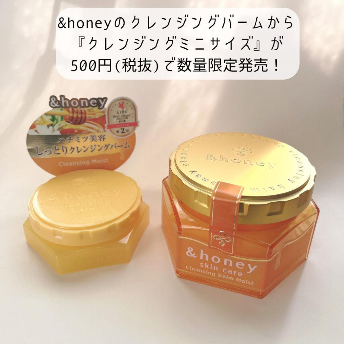 - 『&honey』から初のスキンケアシリーズ、クレンジングが誕生。 肌にうるおいを与えながら落とすハチミツ美容で、製品の90%以上をハチミツやアルガンオイル、オーガニックヒアルロン酸などの保湿&整肌成分で構成。 【クレンジングバーム モイスト】 ・ハニーモイスト成分*を配合 潤いを残しながらメイクをOFF.しっとり肌へ導きます。 ・1つで5役 メイク落とし・角質ケア・洗顔・マッサージ・保湿の5役 ・W洗顔不要。まつエクOK。パッチテスト済み。 ・無添加・フリー処方 合成着色料・パラベン・アルコール・動物実験フリー ・スイートハニーの香り *プロポリスエキス、ハチミツ(全て保湿)