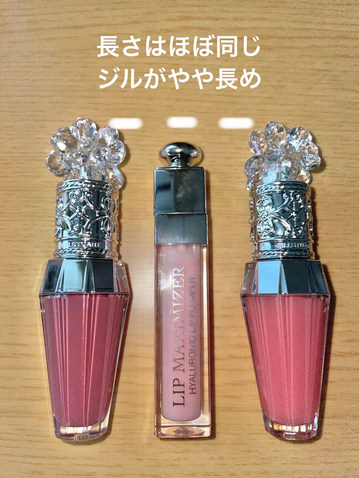 容器は長さもほぼ同じ。ヴィセの方が少しだけスリムな形です。 ヴィセの方がテクスチャーが重め。もったりしたグロス感あり。 ヴィセはスースー、DIORはピリピリに近い感覚の刺激感。 ヴィセのアプリケーターの方が1度に多くの液体が取れる DIORの方が長い時間刺激を感じる。 保湿ならDIOR。 DIORは浸透、ヴィセはコーティングって感じ。 唇にしっかり馴染んでくれるマキシマイザーの方が個人的に好みではあるけど、この価格でこのクオリティならヴィセの方が気兼ねなくたっぷり使えるし、リピしようと思える。 中身入れ替えられたらよほどのヘビーユーザーしか気づけない気がするくらい似ているので、自身に合わせて購入するのをおすすめします。