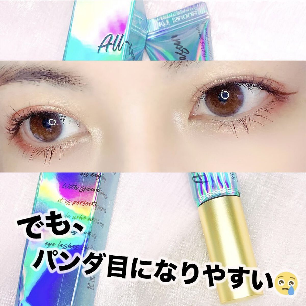 ブラシはやや大きめでカーブはちょうど良さげ。 緩めの液でほんとにダマにならない。 2度塗りしてもダマにならない点においてはかなり塗りやすいのかも! つや感を持続させながら、しっかりロング効果もあって 最初に使用した時はめちゃくちゃ感動☆*。 アイメイク落としでサクッと落とせたのもポイント高い まつ毛にツヤがあるとそれだけでいい感じに見える! マスカラ下地は必須。 下地を使えば泣いても目薬しても落ちなかったよ✩.*˚