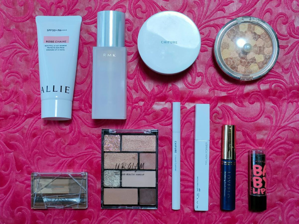 アリィー ニュアンスチェンジUV ジェル RSを、顔全体にまんべんなく塗ります。 RMK RMK ジェルクリーミィファンデーション 103を、顔全体にまんべんなく塗ります。 ジョンソンベビー ジョンソン ベビーパウダーを、顔全体にまんべんなく軽くはたきます。 THE BODY SHOP bronze shade warm glowを、両頬に塗ります。 KATE リフレクトミラーアイズ BR-1の締め色を、眉毛全体にまんべんなく塗ります。 URGLAM UR GLAMBLOOMING EYE COLOR PALETTE 01を、使用しました。 ちふれ リキッド アイライナー 筆ペンタイプ BK30 ブラックを、塗ります。 CEZANNE エアリーカールマスカラを、まつ毛全体にまんべんなく塗ります。 MAYBELLINE NEW YORK コロッサルボリュームエクスプレスを、まつ毛全体にまんべんなく塗ります。 MAYBELLINE NEW YORK SPステイ マットインク 135を、唇全体にまんべんなく塗ります。