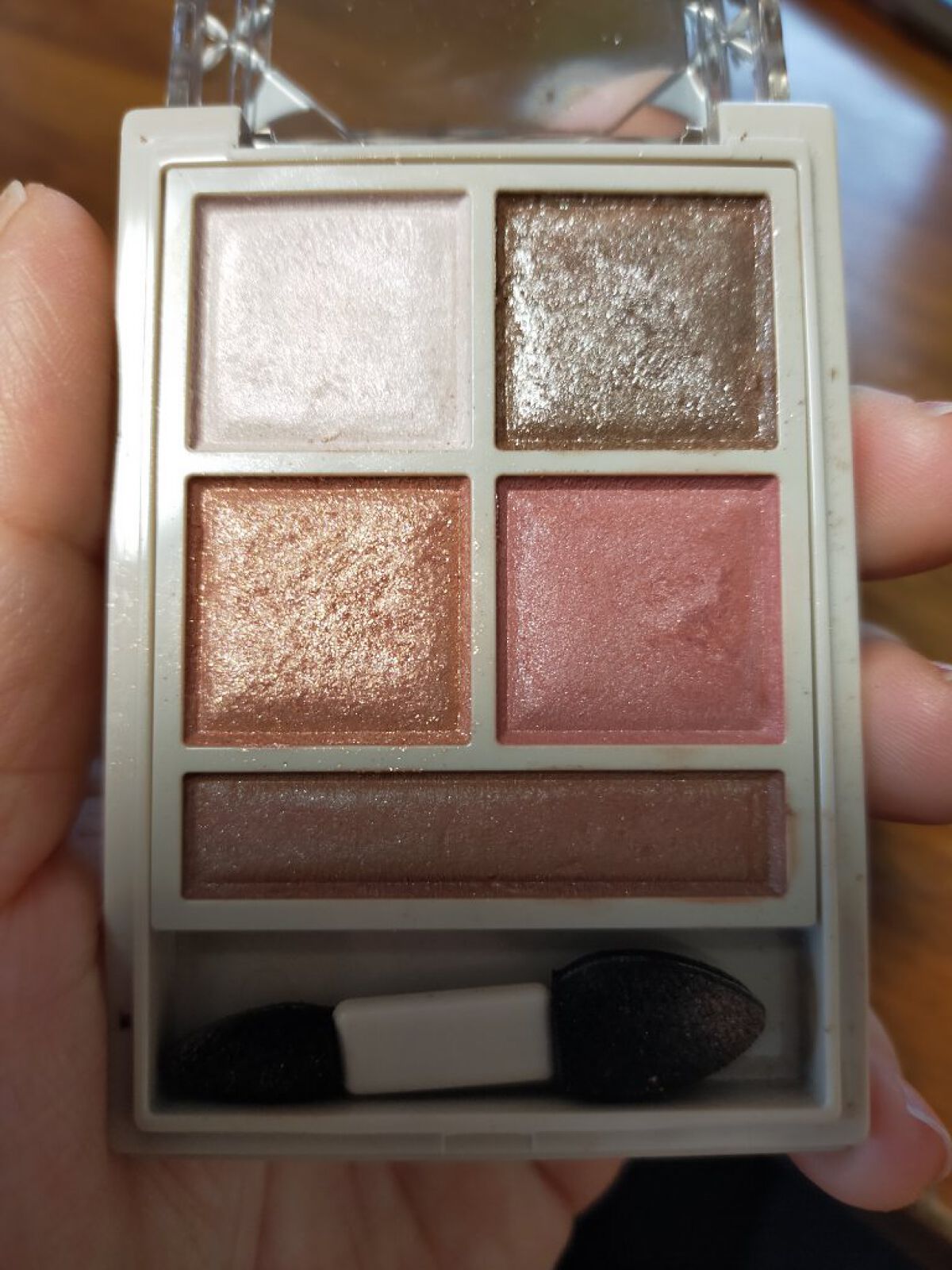 粉とびも感じられず色もちもいいです✨ 見たまま発色❗️いいです♪ 派手色じゃないのでとても肌馴染みよく使いやすいです♩ マットなメイクが苦手で老けてしまうタイプなので、ラメ必須で使っています♩