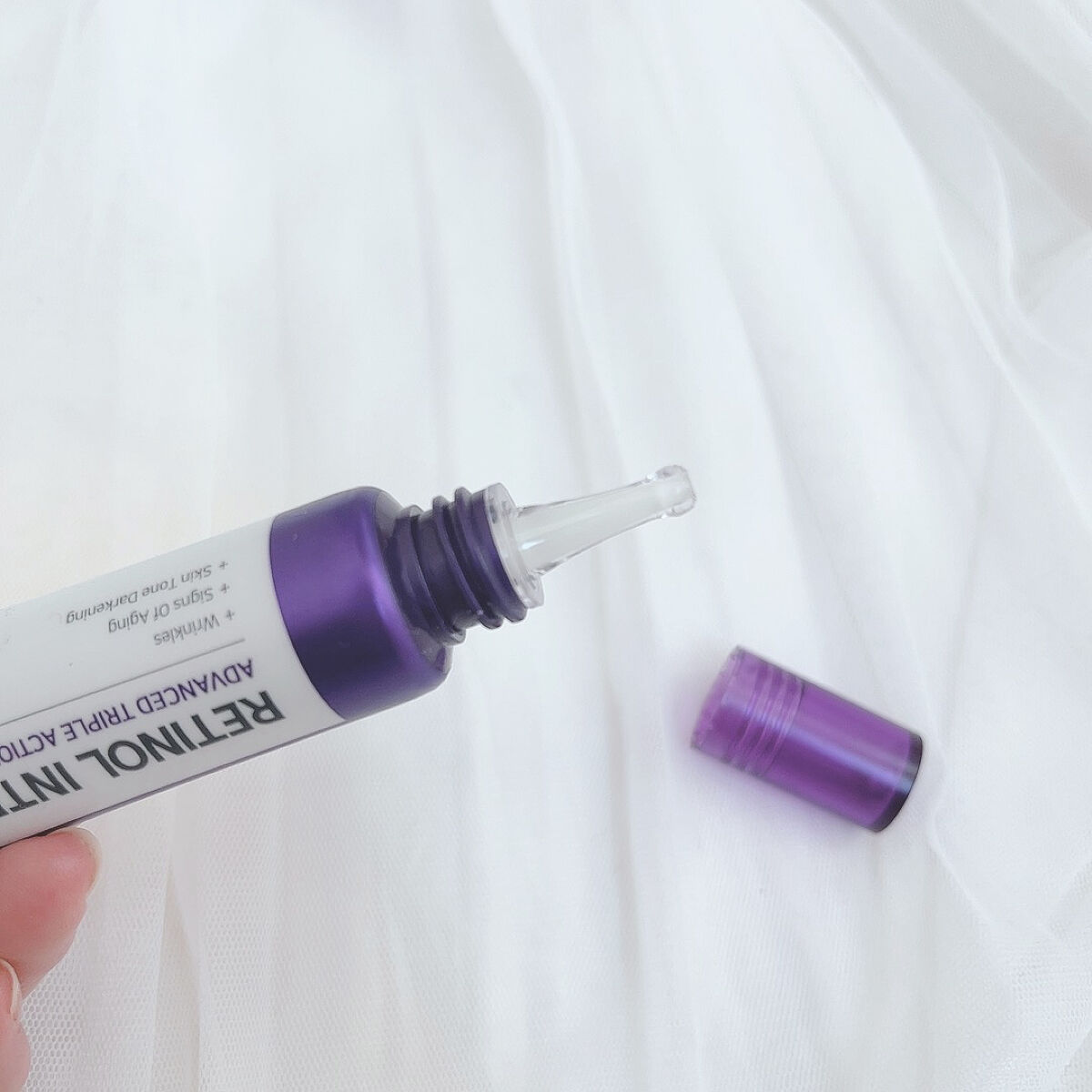 サムバイミーは、トラブル肌、敏感肌に注意を注いでいるスキンケアブランド☝️ そんなサムバイミーが作った、レチノール入りのアイクリームって👀⤴️⤴️ レチノール0.1%+グルタチオン配合で、レチノール入りなのに初心者でも使いやすい😆 クリーム色の、滑らかなクリーム状テクスチャー😌 チューブの先が細く、少量も出しやすいし目元ケアしやすい⤴️