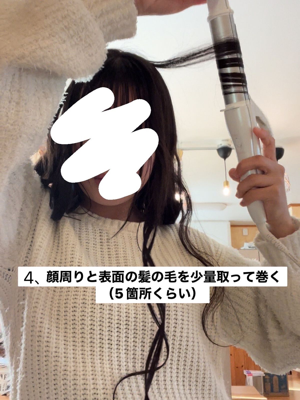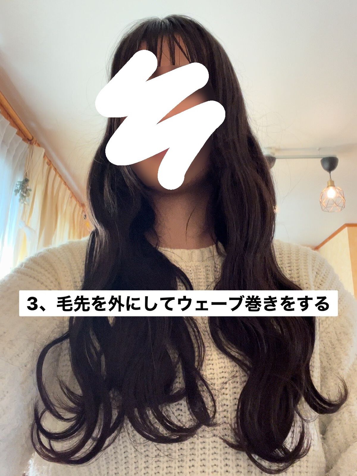簡単にできるのでぜひお試しください💞 ①髪の毛を四つに分ける ②外→内→外 内→外→内 の順番でウェーブ巻きする ③顔まわりの髪の毛ともみあげまわりの髪の毛を 1、2cmくらいとって外巻きにする ④オイルをつけてほぐす 反対側も同じようにやって完成です!!