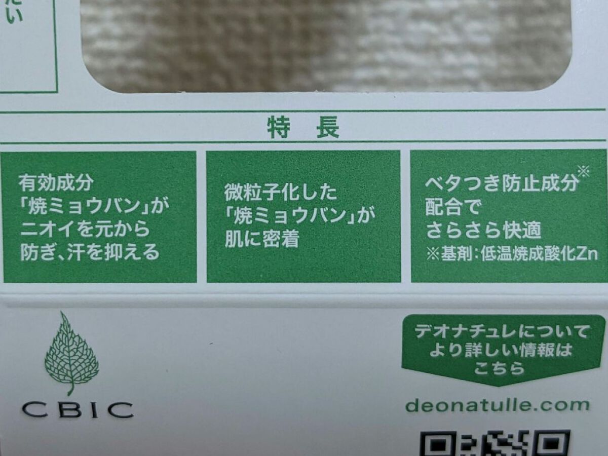 - <20g > 有効成分:焼ミョウバン、イソプロピルメチルフェノール その他成分:シクロペンタシロキサン、ステアリルアルコール、POPブチルエーテルー1、セスキイソステアリン酸ソルビタン、水添ヒマシ油、メントール、低温焼成酸化Zn、天然ビタミンE、トリ(カプリル・カプリン酸)グリセリル、茶エキスー1