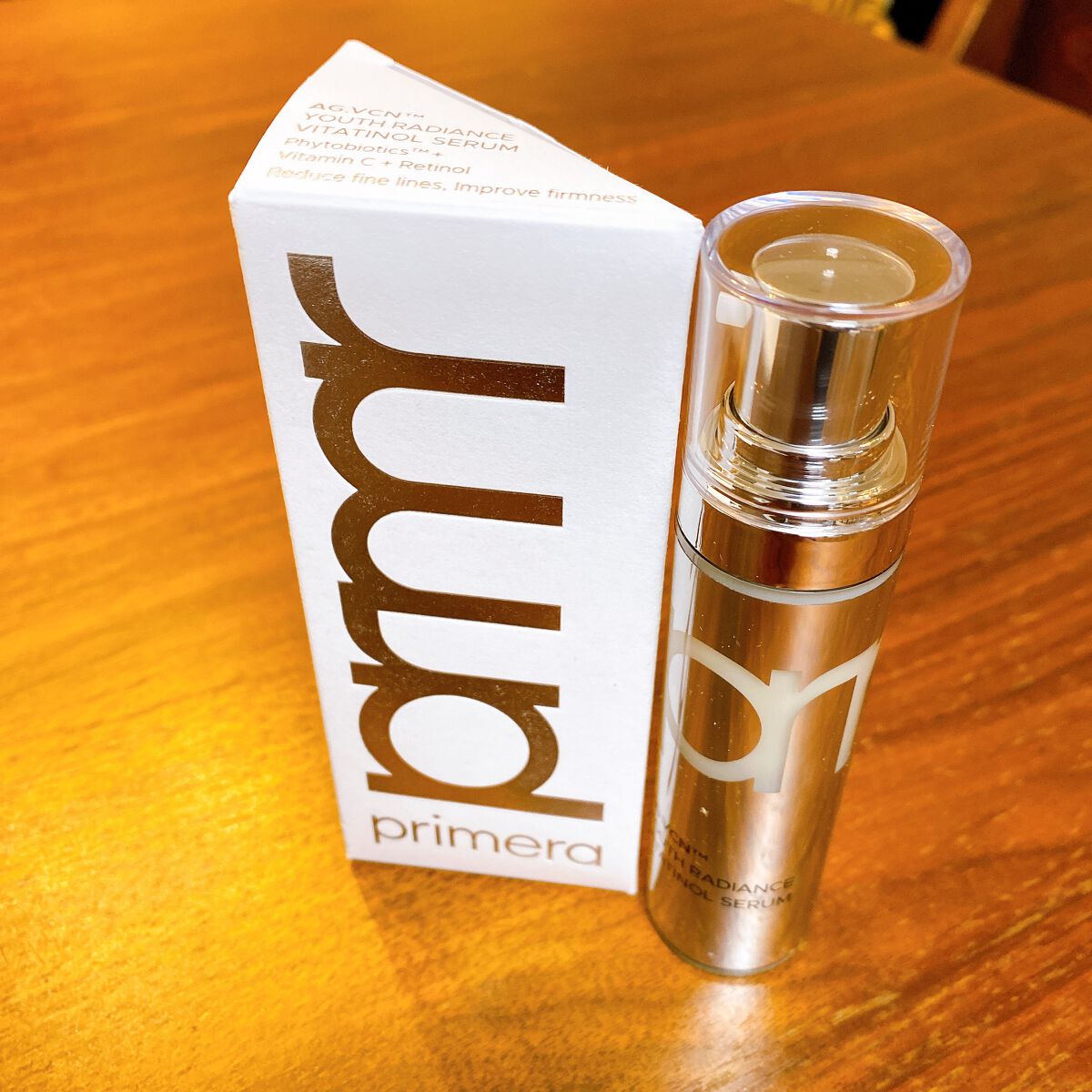 .Primeraユースラディアンスビタチノールセラム15g#PRお試しさせていただきました。テクスチャーはとろっとしていて伸びが良いセラム。スゥーッと肌に馴染み。香りはそんなに感じなかったけどフローラルの香りらしい!!パッケージのPあたりの場...