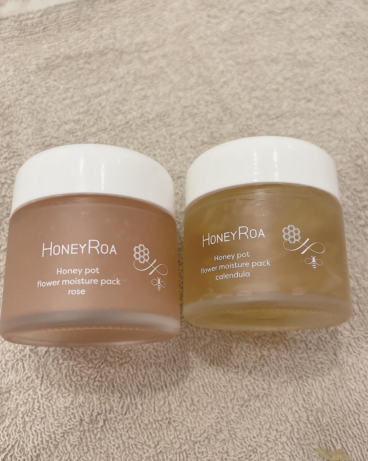 こちらのアイテムは見た目がかわいくてテンションが上がります🕊 今の季節にぴったりのアイテム♡ 2つセットのプレゼントにも◎ 🍯ハニーロアハニーポット フラワーモイスチャーパック トウキンセンカはフランスの農場で栽培された色鮮やかなトウキンセンカの花びらをたっぷりと閉じ込めた、洗い流さない美容液パック🕊 まるでとろけるようなジェルベースのパックでみずみずしいテクスチャー♡ 🍯ハニーロアハニーポット フラワーモイスチャーパックはダマスクローズの花びらをたっぷりと閉じ込めた洗い流さない美容液&パック♡ プルプルのテクスチャーが◎ どちらも香りがとても心地よくてリラックスする使用感が好きですね♡