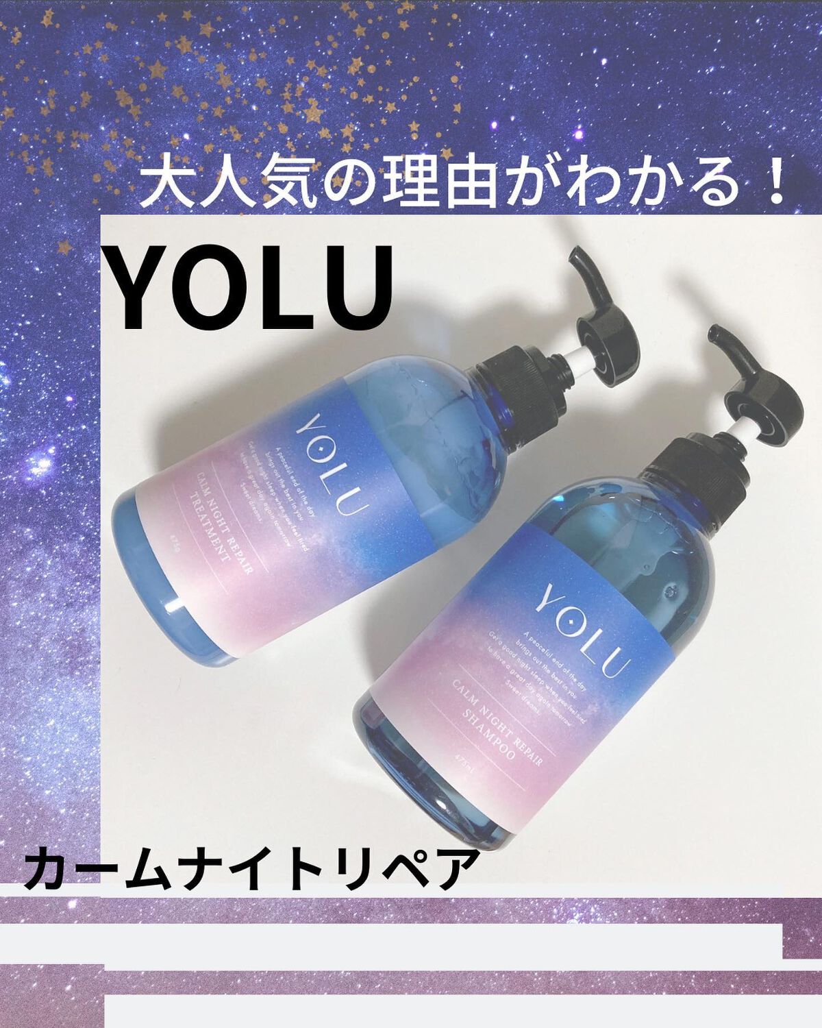 YOLUカームナイトリペアシャンプー/トリートメント@yolu_official様からいただきお試ししましたオシャレなパッケージダメージリスクは日中だけでなく、夜にも髪と地肌の濃密ナイトケアで、しっとりうるツヤ髪へナイトキャップ処方で睡眠中の...