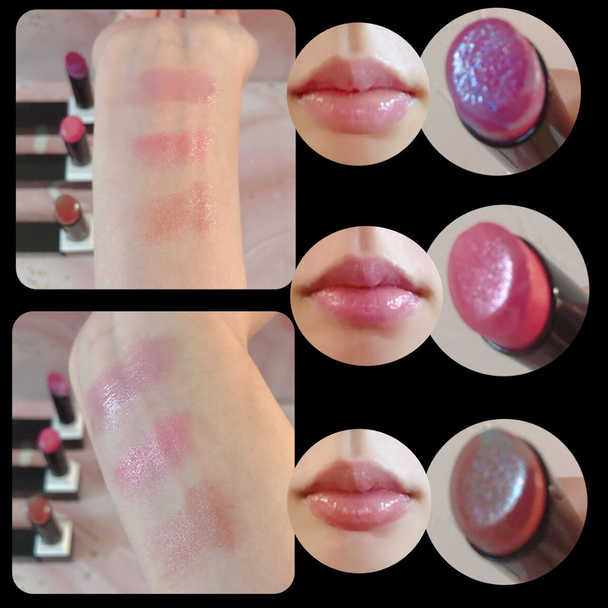 KANEBOMOISTUREROUGENEO302MauvePlanet303StrawberryNeonEX7CyberBrickスルスルと塗れる滑らかなテクスチャーのリップ💄発色、保湿力も◎302、303、EX7は美しいマーブル模様とろけ...