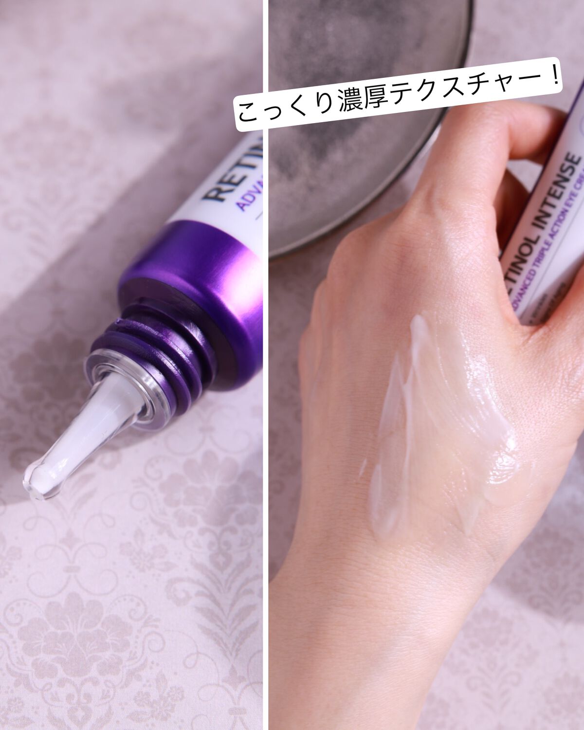 サムバイミーは、トラブル肌、敏感肌に注意を注いでいるスキンケアブランド☝️ そんなサムバイミーが作った、レチノール入りのアイクリームって👀⤴️⤴️ レチノール0.1%+グルタチオン配合で、レチノール入りなのに初心者でも使いやすい😆 クリーム色の、滑らかなクリーム状テクスチャー😌 チューブの先が細く、少量も出しやすいし目元ケアしやすい⤴️