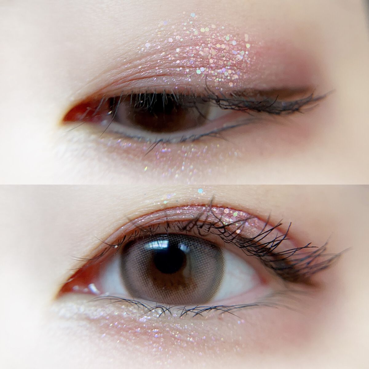 peachCのアイシャドウは、配色が面白くて唯一無二な感じが好き💘 ザクッザクのグリッターが4種も入ってて 可愛い感じにも仕上げられるし、締め色の濃色をメインに使えばクールにも仕上げられる優秀パレット🪩 グリッターは取りにくさを感じないしちゃんとたっぷり乗せられるし密着度も高くて使いやすいよ‼️