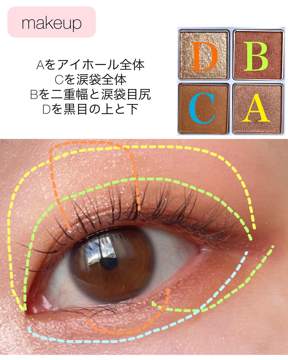正直に言います😂このメイク自信ない💦 urglamのアイシャドウって色を重ねすぎるとちょっと粉っぽいと言うか綺麗に色を混ぜられないんです😂 ただ二重幅に使った色みと中央のホワイトは可愛い😍