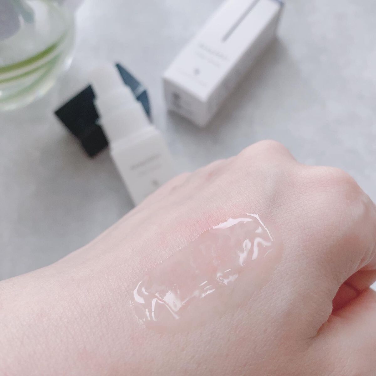 ぷるんぷるんのゼリーのようなジェル状のテクスチャーは、少し硬めなので液ダレせずに使えるのでお肌に伸ばしやすい✨ ベタベタすることなく使えて、さっぱりとした使い心地なので他のスキンケアと併用したり、気になる箇所には重ね付けしたりして使えます🌿 このオールインワンゲル1つで、基本的なスキンケアができるので忙しい朝にも嬉しいアイテムです✨
