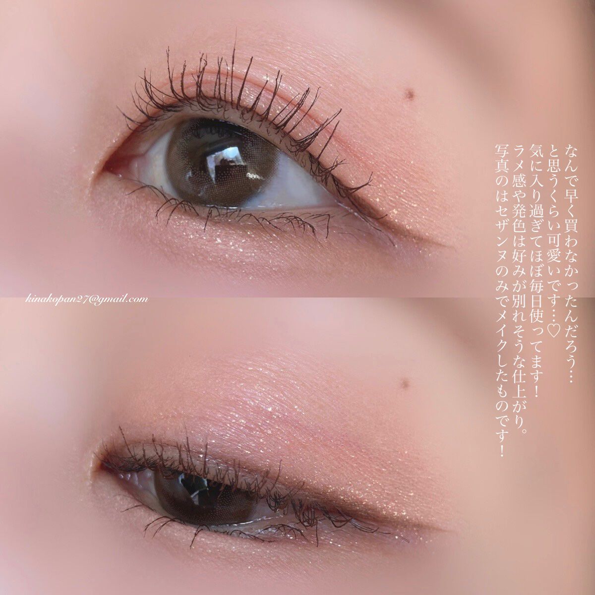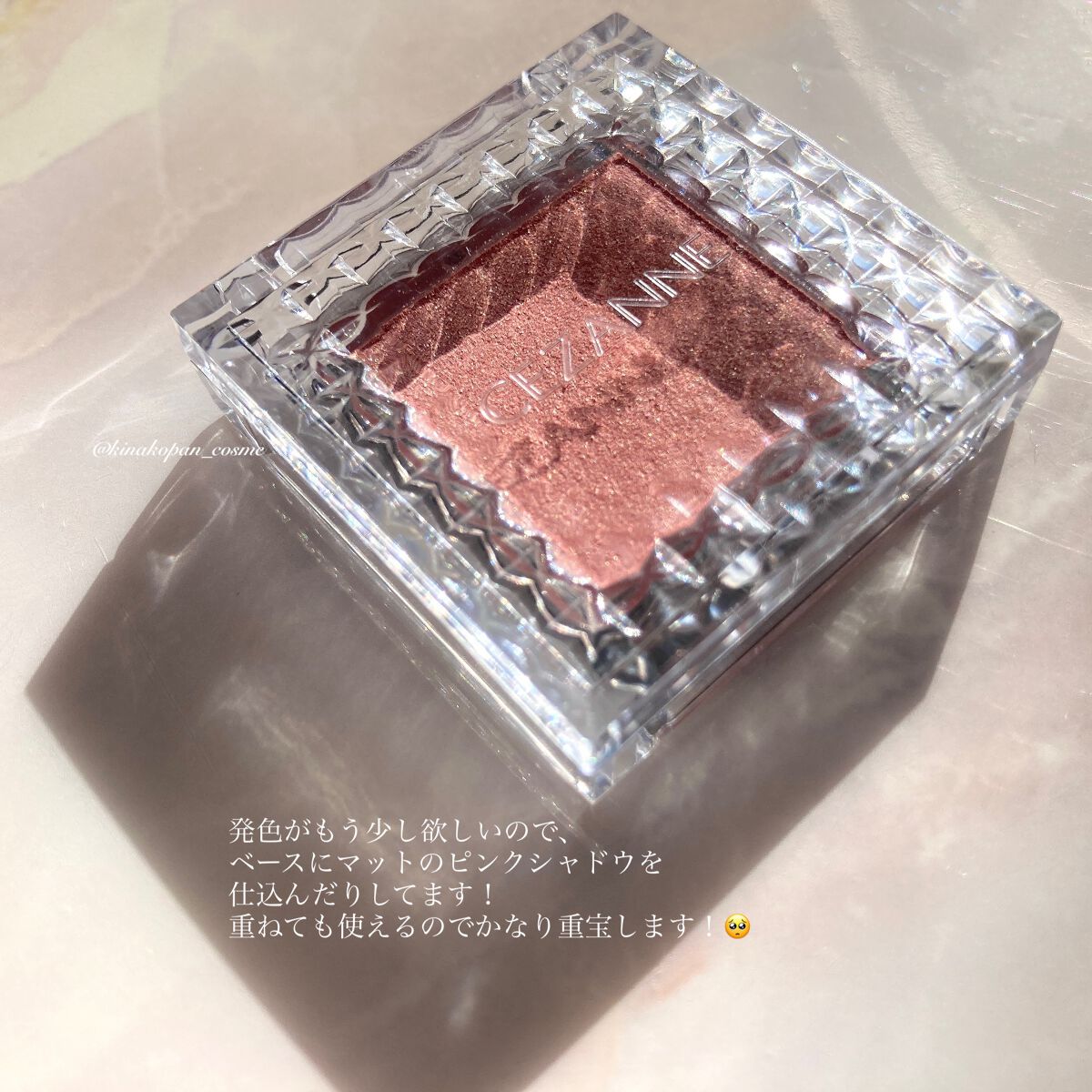 以前から欲しかった、セザンヌのシングルカラーアイシャドウ。 この秋に廃盤になるお色があるという情報を見かけて、手に入らなくなる前にとお迎えしました😊 どちらのお色もキラキラでキレイです✨ イエベの私には08ゴールドピンクのほうが使いやすそう😍