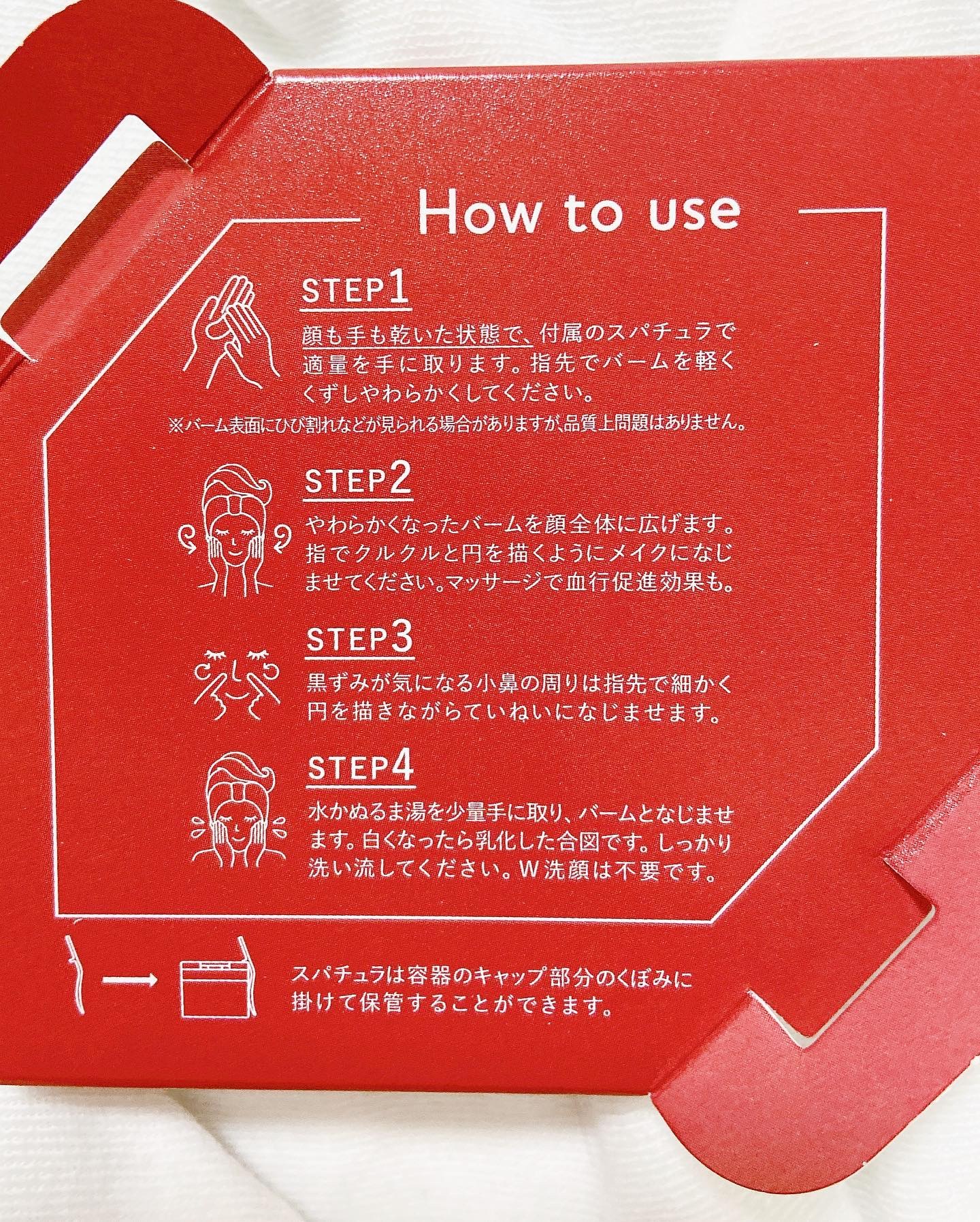 エイジングケアにおすすめの成分 ナイアシンアミドやローヤルゼリーペプチド、2種類のビタミンが配合されてるよ! 押すとポンッとワンタッチで開く蓋が便利でスパチュラは蓋に掛けておける🫢 バームは体温ですぐとろけるし、適度な厚みがあるから擦らず落とせて刺激も感じにくい💖