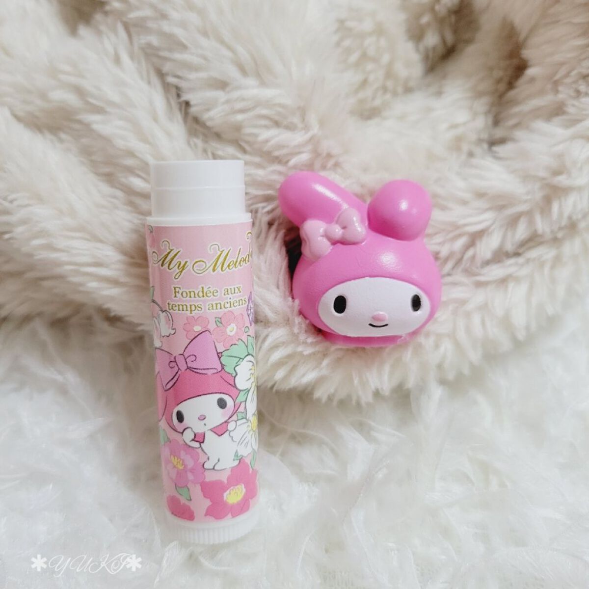 ぷにぷにのマイメロがキャップになったリップクリーム♡ かわいい…!!! 肝心の中身は、するんとなめらかなテクスチャーでベタつかず保湿感のある使い心地。 柔らかすぎず硬すぎず、シルキーな感じが気に入ったよ〜♡ ピーチティーの香りもほんのりするぐらいで使いやすかった!