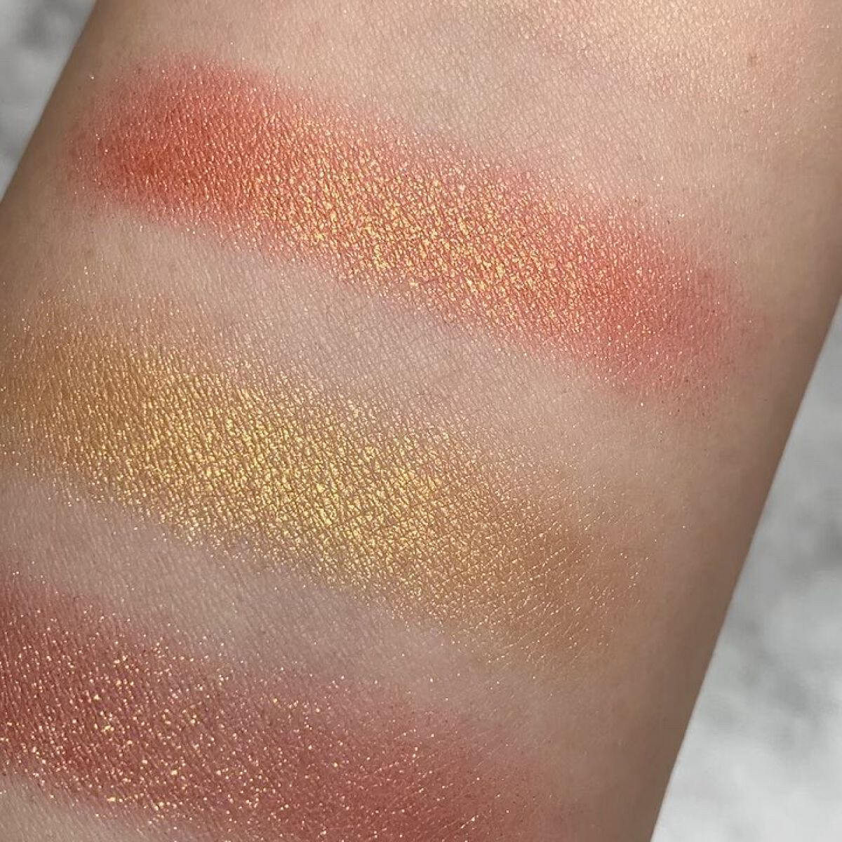 ライトスカペードはピンク、ブルー、イエロー、オレンジなど数種のピグメントを絶妙にブレンドしているそう! 美しいマーブル模様の柔らかな質感のパウダーが肌色に溶け込み、透明感のあるみずみずしい肌に仕上げます。 指にとって塗ってみるとさらさらとした質感で肌馴染みがよく自然なツヤ感があります。 角度によってまた違う輝きがあって美しいハイライトです✨ ナチュラルなメイクでも派手目なメイクでも使いやすい! 目の下の涙袋に使っても馴染みやすく綺麗に仕上がります。 ラメ感のあるギラギラというよりはパールっぽいツヤ感✨