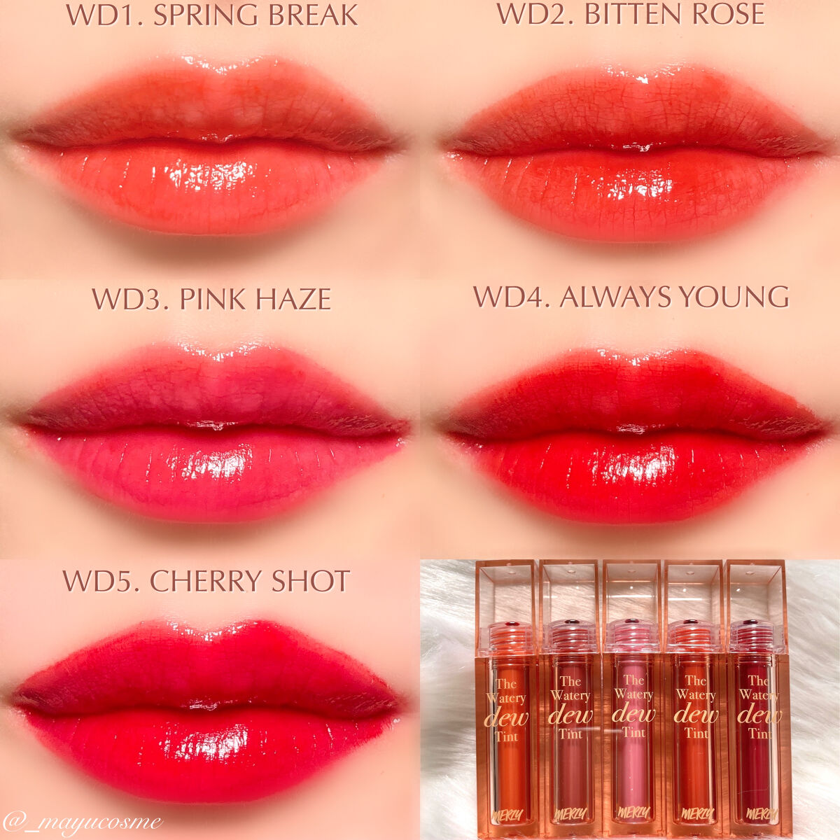 MERZYザウォータリーデューティントWD1スプリングブレイクWD2ビトゥンローズWD3ピンクヘイズWD4オールウェイズヤングWD5チェリーショット期限間近、箱汚れの訳あり5本セット ¥550〜¥999(税込)✼••┈┈••✼••┈┈••✼•...