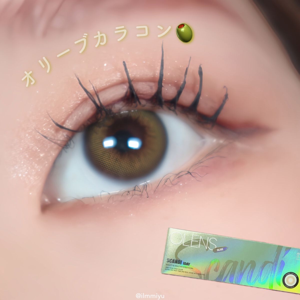 \フチなしで瞳のニュアンスチェンジ/今回ご紹介するのは、フチなしで瞳の内側の色味を変えてくれるようなカラコン!ふわっと瞳の色味をオリーブに変えてくれてとてもおしゃれ✨ベージュ系のメイクにもぴったりでかわいい🤍🫒OLENSSCANDI1DAYO...