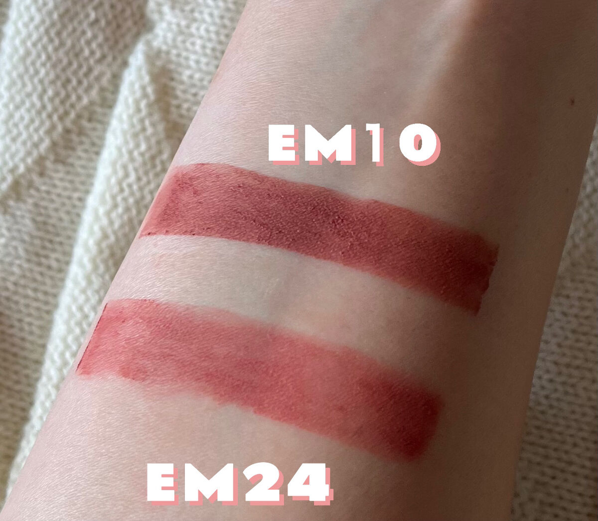 - <EM-J01 ピンクミスト> ジメチコン、ジメチコンクロスポリマー、トリベヘニン、リンゴ酸ジイソステアリル、(ビニルジメチコン/メチコンシルセスキオキサン)クロスポリマー、酸化チタン、セチルPEG/PPG-10/1ジメチコン、イソステアリン酸ソルビタン、(VP/ヘキサデセン)コポリマー、トリイソステアリン酸ポリグリセリル-2、ジイソステアリン酸ポリグリセリル-2、赤230(1)、赤202、黄4、香料、デヒドロ酢酸、酸化鉄 <EM-J02 ベルベットムード > ジメチコン、ジメチコンクロスポリマー、トリベヘニン、リンゴ酸ジイソステアリル、酸化チタン、(ビニルジメチコン/メチコンシルセスキオキサン)クロスポリマー、セチルPEG/PPG-10/1ジメチコン、イソステアリン酸ソルビタン、(VP/ヘキサデセン)コポリマー、トリイソステアリン酸ポリグリセリル-2、酸化鉄、赤202、ジイソステアリン酸ポリグリセリル-2香料、ジメチルシリル化シリカ、デヒドロ酢酸、黄4、黄5 <EM01 ポップスターブリック> ジメチコン、ジメチコンクロスポリマー、トリベヘニン、トリイソステアリン酸ポリグリセリル-2、酸化鉄、(ビニルジメチコン/メチコンシルセスキオキサン)クロスポリマー、セチルPEG/PPG-10/1ジメチコン、イソステアリン酸ソルビタン、(VP/ヘキサデセン)コポリマー、黄5、リンゴ酸ジイソステアリル、赤202、ジイソステアリン酸ポリグリセリル-2、香料、デヒドロ酢酸、水添ロジン酸メチル <EM03 モデルテラコッタ> ジメチコン、ジメチコンクロスポリマー、トリイソステアリン酸ポリグリセリル-2、トリベヘニン、黄4、酸化鉄、(ビニルジメチコン/メチコンシルセスキオキサン)クロスポリマー、セチルジメチコンコポリオール、イソステアリン酸ソルビタン、(VP/ヘキサデセン)コポリマー、リンゴ酸ジイソステアリル、香料、デヒドロ酢酸、水添ロジン酸メチル <EM05 美人シナモン> ジメチコン、ジメチコンクロスポリマー、トリベヘニン、リンゴ酸ジイソステアリル、酸化チタン、酸化鉄、トリイソステアリン酸ポリグリセリル-2、(ビニルジメチコン/メチコンシルセスキオキサン)クロスポリマー、セチルジメチコンコポリオール、イソステアリン酸ソルビタン、(VP/ヘキサデセン)コポリマー、香料、赤202、ジイソステアリン酸ポリグリセリル-2、デヒドロ酢酸、水添ロジン酸メチル <EM07 ファッショニスタココア> ジメチコン、ジメチコンクロスポリマー、トリイソステアリン酸ポリグリセリル-2、トリベヘニン、赤227、(ビニルジメチコン/メチコンシルセスキオキサン)クロスポリマー、酸化鉄、セチルジメチコンコポリオール、イソステアリン酸ソルビタン、(VP/ヘキサデセン)コポリマー、黄5、リンゴ酸ジイソステアリル、香料、デヒドロ酢酸、水添ロジン酸メチル <EM08 インフルエンサーモカ> ジメチコン、ジメチコンクロスポリマー、トリベヘニン、トリイソステアリン酸ポリグリセリル-2、(ビニルジメチコン/メチコンシルセスキオキサン)クロスポリマー、リンゴ酸ジイソステアリル、酸化鉄、酸化チタン、セチルジメチコンコポリオール、イソステアリン酸ソルビタン、(VP/ヘキサデセン)コポリマー、黄5、赤202、ジイソステアリン酸ポリグリセリル-2、香料、デヒドロ酢酸、水添ロジン酸メチル <EM09 セレブブラウン> ジメチコン、ジメチコンクロスポリマー、トリベヘニン、リンゴ酸ジイソステアリル、酸化鉄、酸化チタン、トリイソステアリン酸ポリグリセリル-2、(ビニルジメチコン/メチコンシルセスキオキサン)クロスポリマー、セチルジメチコンコポリオール、イソステアリン酸ソルビタン、(VP/ヘキサデセン)コポリマー、香料、赤202、ジイソステアリン酸ポリグリセリル-2、デヒドロ酢酸、水添ロジン酸メチル <EM10 クイーンローズティー> ジメチコン、ジメチコンクロスポリマー、トリベヘニン、トリイソステアリン酸ポリグリセリル-2、(ビニルジメチコン/メチコンシルセスキオキサン)クロスポリマー、リンゴ酸ジイソステアリル、酸化チタン、酸化鉄、セチルジメチコンコポリオール、イソステアリン酸ソルビタン、(VP/ヘキサデセン)コポリマー、赤227、香料、デヒドロ酢酸、水添ロジン酸メチル <EM11 アーティストモーヴ> ジメチコン、ジメチコンクロスポリマー、トリベヘニン、リンゴ酸ジイソステアリル、(ビニルジメチコン/メチコンシルセスキオキサン)クロスポリマー、酸化チタン、トリイソステアリン酸ポリグリセリル-2、酸化鉄、セチルジメチコンコポリオール、イソステアリン酸ソルビタン、(VP/ヘキサデセン)コポリマー、黄5、赤202、ジイソステアリン酸ポリグリセリル-2、香料、デヒドロ酢酸、水添ロジン酸メチル <EM12 高嶺の花コーラル> ジメチコン、ジメチコンクロスポリマー、トリベヘニン、リンゴ酸ジイソステアリル、酸化チタン、(ビニルジメチコン/メチコンシルセスキオキサン)クロスポリマー、トリイソステアリン酸ポリグリセリル-2、セチルジメチコンコポリオール、イソステアリン酸ソルビタン、(VP/ヘキサデセン)コポリマー、黄4