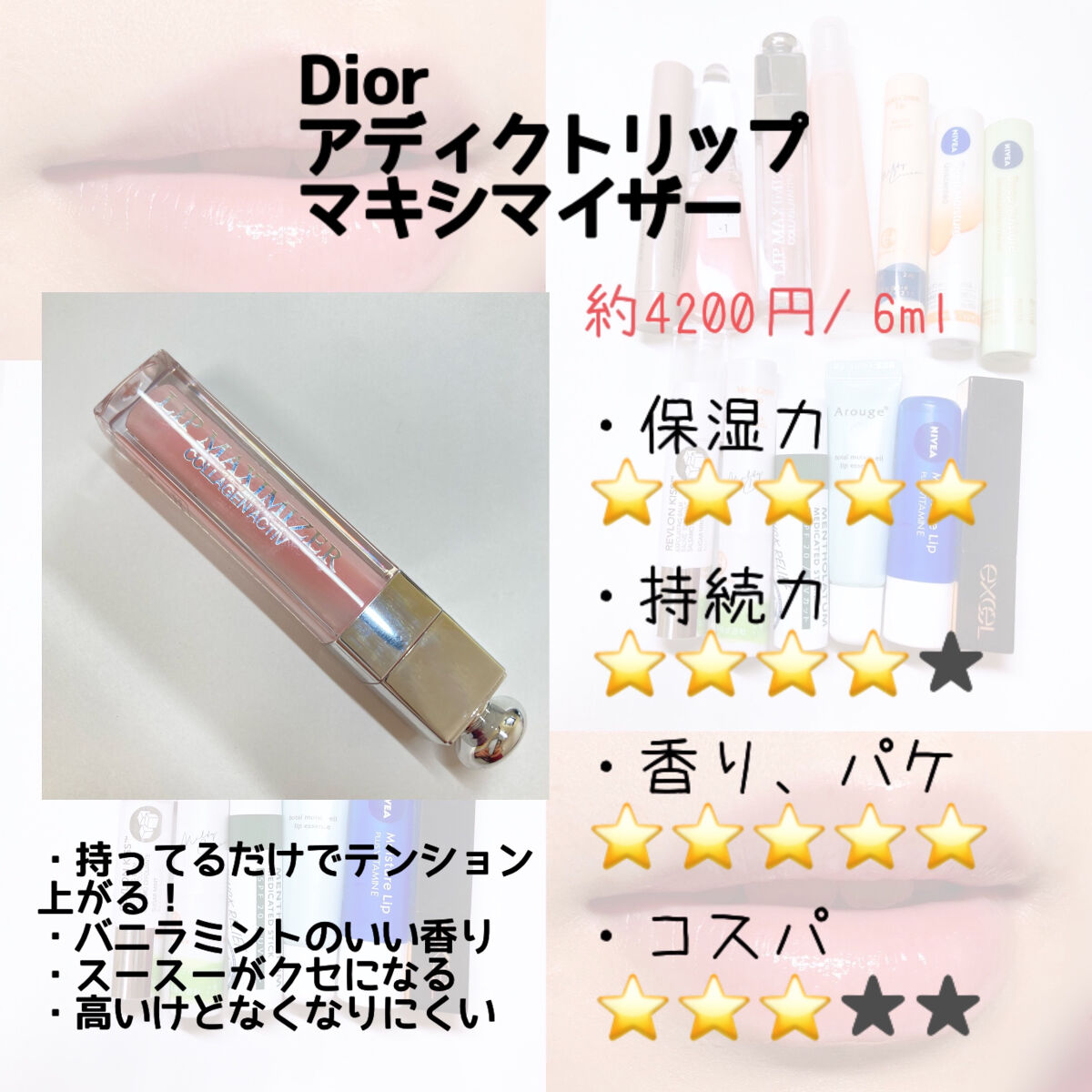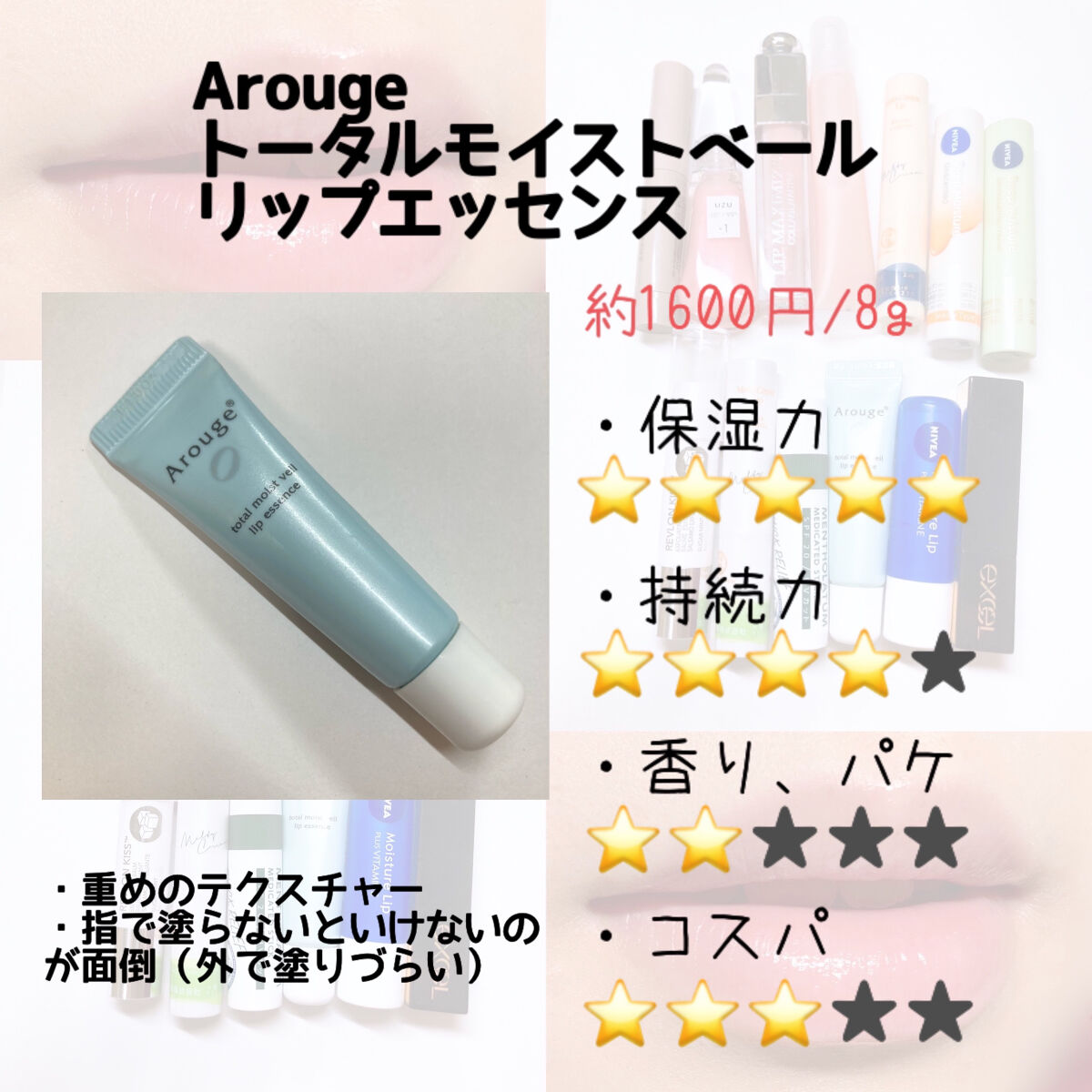 | 口紅・グロス・リップライナーランキング第116位 | テクスチャーがサラッとしていて 本当に“美容液”感が強い!ほとんどベタつかないし リップのベースとして使いやすい | 詳細を見る | |