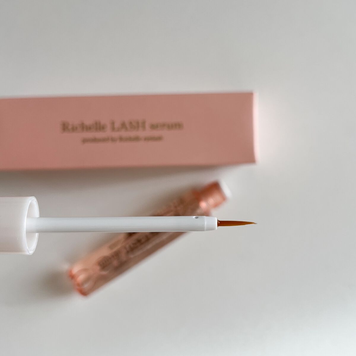 RichelleLASHserum使ってみました。月間400名のお客様を施術するアイリストさんが、本気で作ったまつげ専用美容液です。極細筆なので目の際まで使いやすく、まつ毛の根本にちゃんと塗れている感覚がありました。筆は柔らかすぎずコシもある...