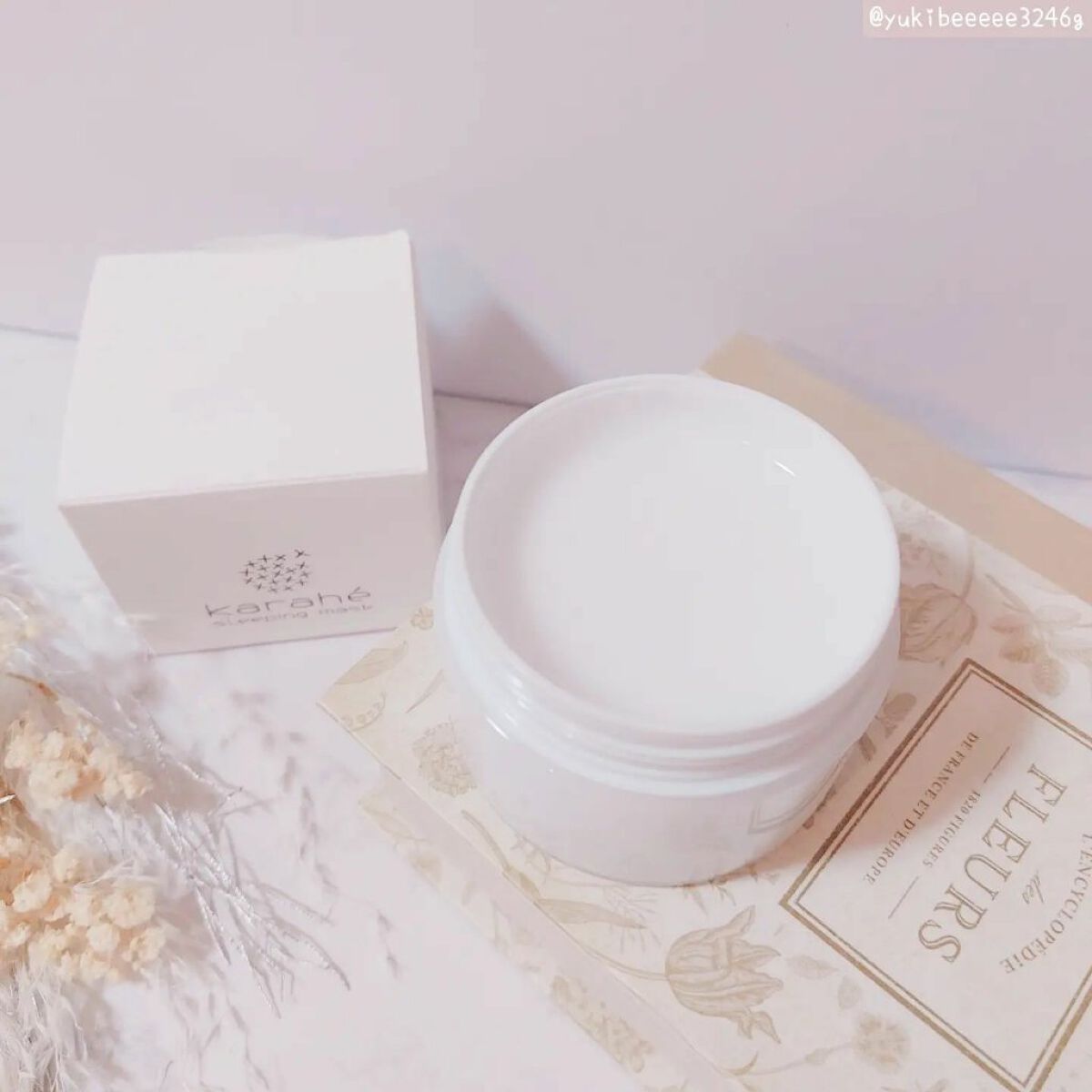 ぷるるんとなめらかでやわらかなテクスチャで肌なじみがよくすぅ〜っとのびていく、みずみずしくて気持ちがいい、ベタつかずにしっとりとして快適心地(*´艸`*) パラベン、アルコール、合成香料、合成着色料、鉱物油の5つのフリーが敏感肌の私には嬉しいこと♡ スキンケアのあと、おやすみの前にスパチュラ1杯分を手にとって、顔全体にのばしてパックのようにおおって、優しくハンドプレスしていく しっとりと包まれる感じがたまらない〜 深呼吸をしたくなるような華やかなゼラニウムの香りにつつまれて、ぐっすりと眠れそう 洗い流さなくていい手軽さもよき