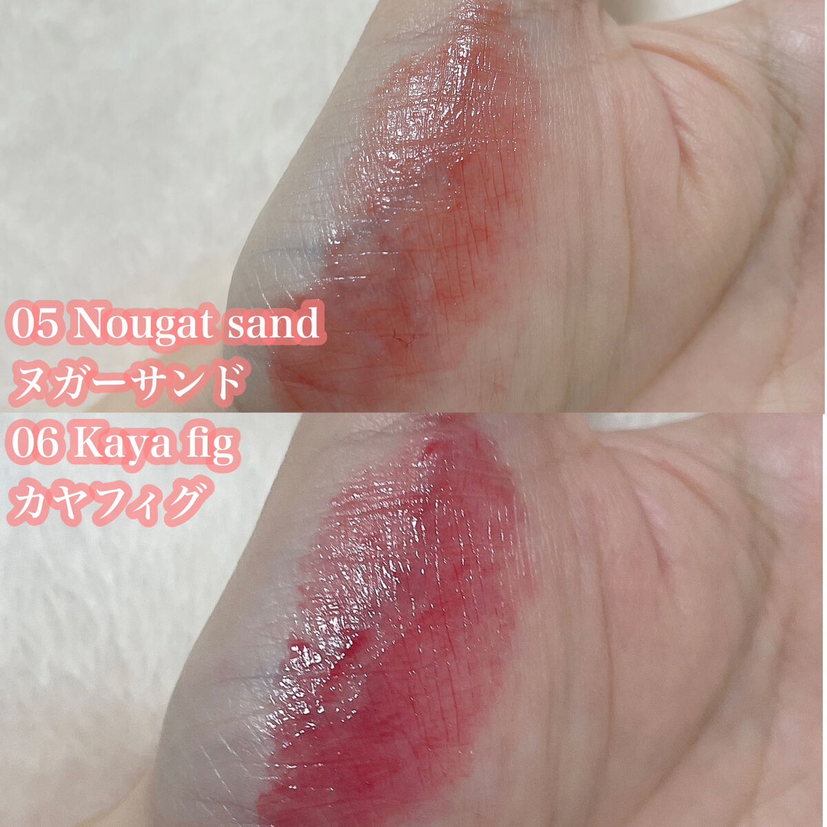 - <01 ココヌード(Coco Nude)> リンゴ酸ジイソステアリル、ダイマージリノール酸ダイマージリノレイルビス(ベヘニル/イソステアリル/フィトステリル)、トリイソステアリン酸ポリグリセリル-2、ビスジグリセリルポリアシルアジペート-2、パラフィン、トリメリト酸トリトリデシル、テトライソステアリン酸ペンタエリスリチル、マイクロクリスタリンワックス、イソステアリン酸ソルビタン、1,2-ヘキサンジオール、ジステアルジモニウムヘクトライト、合成ワックス、酸化チタン、(エチレン/プロピレン)コポリマー、酸化鉄、炭酸プロピレン、香料、赤104(1)、リモネン、リナロール、ホホバ種子油、アーモンド油、アンズ核油、月見草油、オリーブ果実油、アルガニアスピノサ核油、シア脂、ツバキ種子油、トリ(カプリル/カプリン酸)グリセリル、マンゴー果実エキス、カニナバラ果実エキス <02 ラヴィーピンク(Lovey Pink)> リンゴ酸ジイソステアリル、ダイマージリノール酸ダイマージリノレイルビス(ベヘニル/イソステアリル/フィトステリル)、トリイソステアリン酸ポリグリセリル-2、ビスジグリセリルポリアシルアジペート-2、パラフィン、トリメリト酸トリトリデシル、テトライソステアリン酸ペンタエリスリチル、マイクロクリスタリンワックス、イソステアリン酸ソルビタン、1,2-ヘキサンジオール、ジステアルジモニウムヘクトライト、合成ワックス、酸化チタン、(エチレン/プロピレン)コポリマー、赤104(1)、黄5、炭酸プロピレン、赤202、香料、リモネン、リナロール、ホホバ種子油、アーモンド油、アンズ核油、月見草油、オリーブ果実油、アルガニアスピノサ核油、シア脂、ツバキ種子油、トリ(カプリル/カプリン酸)グリセリル、マンゴー果実エキス、カニナバラ果実エキス <03 ソルベバーム(Sorbet Balm)> リンゴ酸ジイソステアリル、ダイマージリノール酸ダイマージリノレイルビス(ベヘニル/イソステアリル/フィトステリル)、トリイソステアリン酸ポリグリセリル-2、ビスジグリセリルポリアシルアジペート-2、パラフィン、トリメリト酸トリトリデシル、テトライソステアリン酸ペンタエリスリチル、マイクロクリスタリンワックス、イソステアリン酸ソルビタン、1,2-ヘキサンジオール、ジステアルジモニウムヘクトライト、合成ワックス、酸化チタン、赤104(1)、(エチレン/プロピレン)コポリマー、酸化鉄、黄5、炭酸プロピレン、香料、リモネン、リナロール、アルガニアスピノサ核油、シア脂、ツバキ種子油、トリ(カプリル/カプリン酸)グリセリル、アーモンド油、アンズ核油、月見草油、オリーブ果実油、ホホバ種子油、マンゴー果実エキス、カニナバラ果実エキス <04 ヒッピーベリー(Hippie Berry)> リンゴ酸ジイソステアリル、ダイマージリノール酸ダイマージリノレイルビス(ベヘニル/イソステアリル/フィトステリル)、トリイソステアリン酸ポリグリセリル-2、ビスジグリセリルポリアシルアジペート-2、パラフィン、トリメリト酸トリトリデシル、テトライソステアリン酸ペンタエリスリチル、マイクロクリスタリンワックス、イソステアリン酸ソルビタン、1,2-ヘキサンジオール、ジステアルジモニウムヘクトライト、合成ワックス、赤104(1)、黄5、(エチレン/プロピレン)コポリマー、赤202、炭酸プロピレン、酸化鉄、酸化チタン、香料、リモネン、リナロール、ホホバ種子油、アーモンド油、アンズ核油、月見草油、オリーブ果実油、アルガニアスピノサ核油、シア脂、ツバキ種子油、トリ(カプリル/カプリン酸)グリセリル、カニナバラ果実エキス、マンゴー果実エキス <05 ヌガーサンド(Nougat Sand)> リンゴ酸ジイソステアリル、ダイマージリノール酸ダイマージリノレイルビス(ベヘニル/イソステアリル/フィトステリル)、トリイソステアリン酸ポリグリセリル-2、ビスジグリセリルポリアシルアジペート-2、パラフィン、トリメリト酸トリトリデシル、テトライソステアリン酸ペンタエリスリチル、マイクロクリスタリンワックス、イソステアリン酸ソルビタン、酸化チタン、1,2-ヘキサンジオール、ジステアルジモニウムヘクトライト、合成ワックス、黄4、(エチレン/プロピレン)コポリマー、酸化鉄、炭酸プロピレン、赤202、香料、リモネン、青1、リナロール、シア脂、ツバキ種子油、トリ(カプリル/カプリン酸)グリセリル、アルガニアスピノサ核油、ホホバ種子油、アーモンド油、アンズ核油、月見草油、オリーブ果実油、マンゴー果実エキス、カニナバラ果実エキス <06 カヤフィグ(Kaya Fig)> リンゴ酸ジイソステアリル、ダイマージリノール酸ダイマージリノレイルビス(ベヘニル/イソステアリル/フィトステリル)、トリイソステアリン酸ポリグリセリル-2、ビスジグリセリルポリアシルアジペート-2、パラフィン、トリメリト酸トリトリデシル、テトライソステアリン酸ペンタエリスリチル、マイクロクリスタリンワックス、イソステアリン酸ソルビタン、1,2-ヘキサンジオール、酸化チタン、ジステアルジモニウムヘク