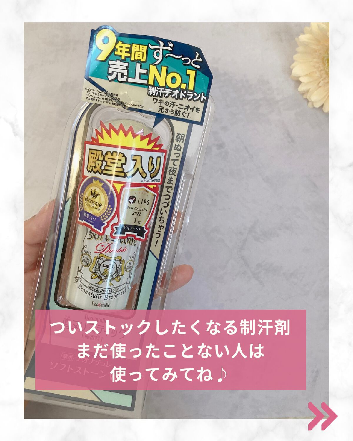 - LIPSベストコスメ2023 殿堂入りLIPSベストコスメ2022 デオドラント部門1位LIPSベストコスメ2021年間 デオドラント・ボディパウダー 第1位LIPSベストコスメ2020年間 小カテゴリ デオドラント 第1位