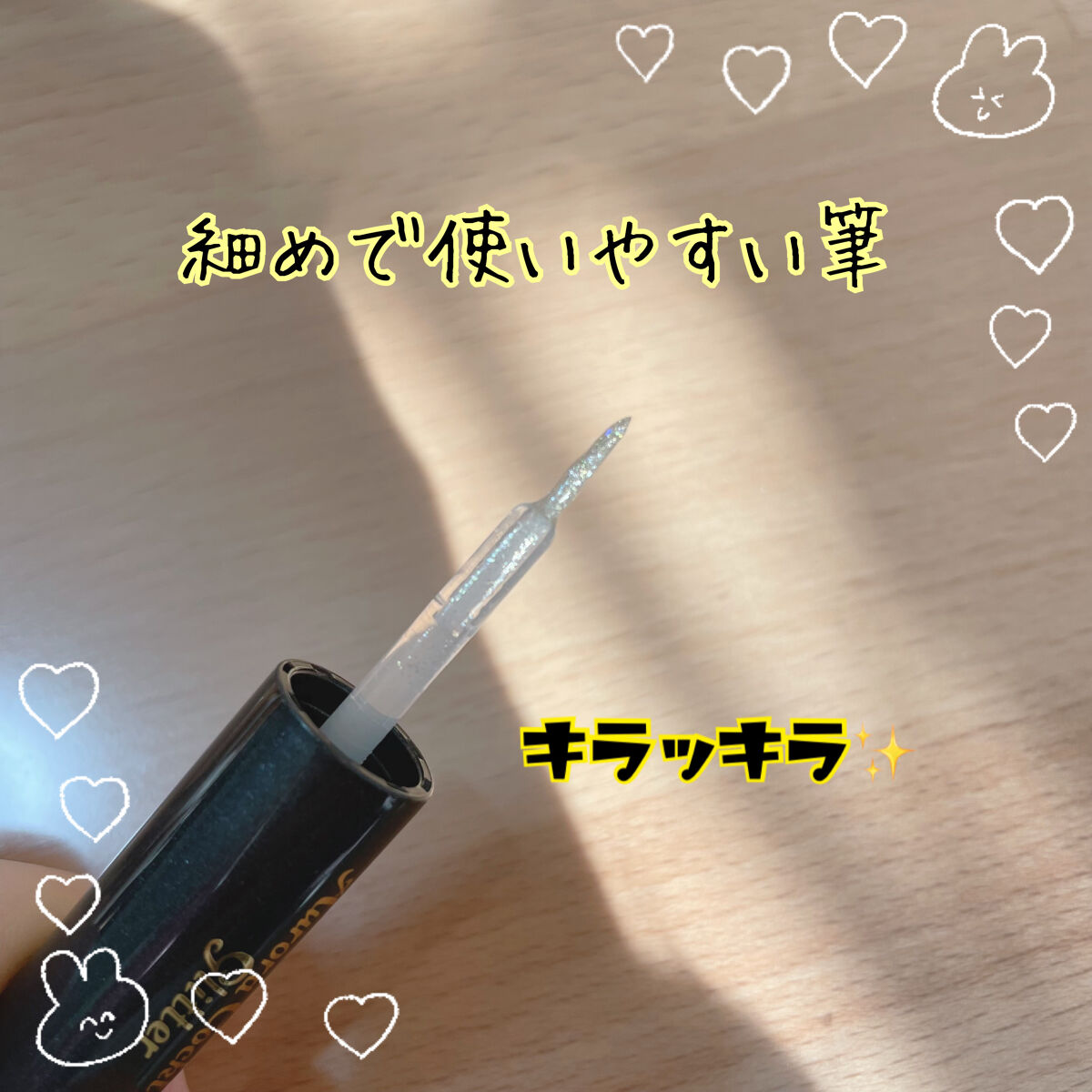 - 大粒すぎないから使いやすい! 高輝度ラメたっぷりのカラフルグリッター ラメの粒子サイズを大きくしすぎないことで、 悪目立ちしない絶妙な輝きに仕上げました。 ベース液にパールを多めに配合しているため、 サラッと控えめに塗ってもしっかり輝きます! やわらかく使い勝手の良い極細筆で、狙ったところにラメをオン! ☆使い方☆ 下まつげのキワに沿って 本品で細くアイラインを引くと、 オーロラに輝く印象的な目元の完成!