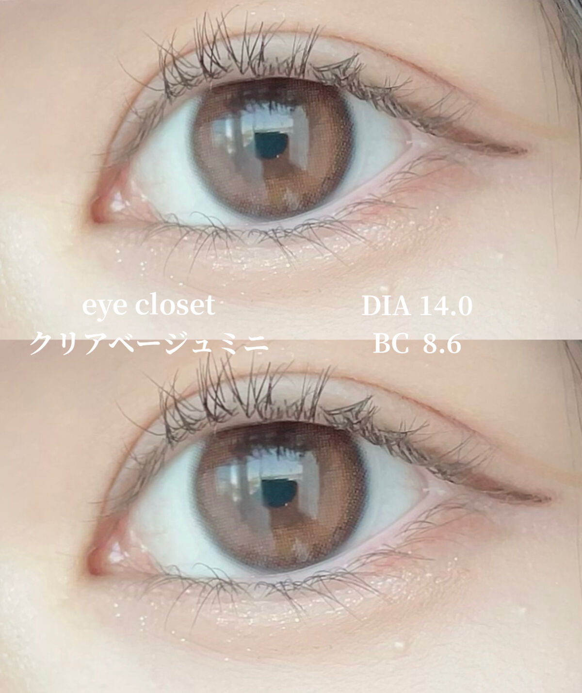- ナチュラル&色素薄い系カラコンの『eye closet』 ナチュラルな発色でも14.5mmのレンズが目元を華やかにしてくれます。 ツヤのある発色がモテナチュラルな甘い瞳を演出