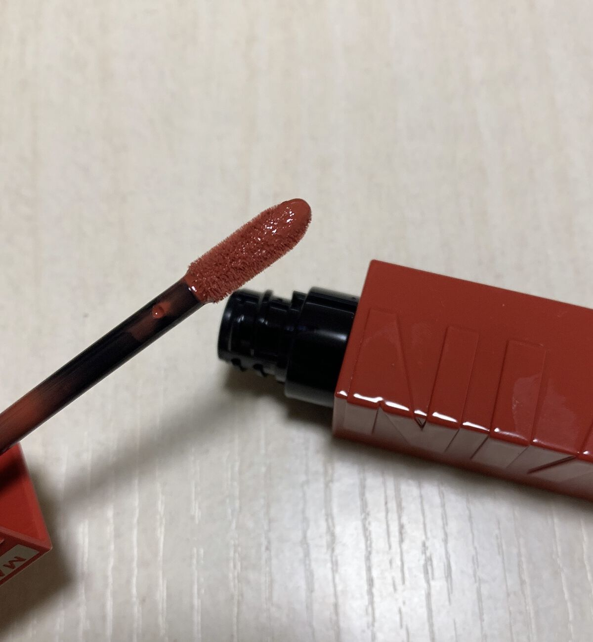 【使った商品】MAYBELLINENEWYORKSPステイヴィニルインク【色味】61危険なマホガニーブラウン【色もち】良い【質感】さらさらぺたっ【保湿】あまりない【良いところ】高発色、落ちにくい【イマイチなところ】食事をしたら内側から落ちる感...