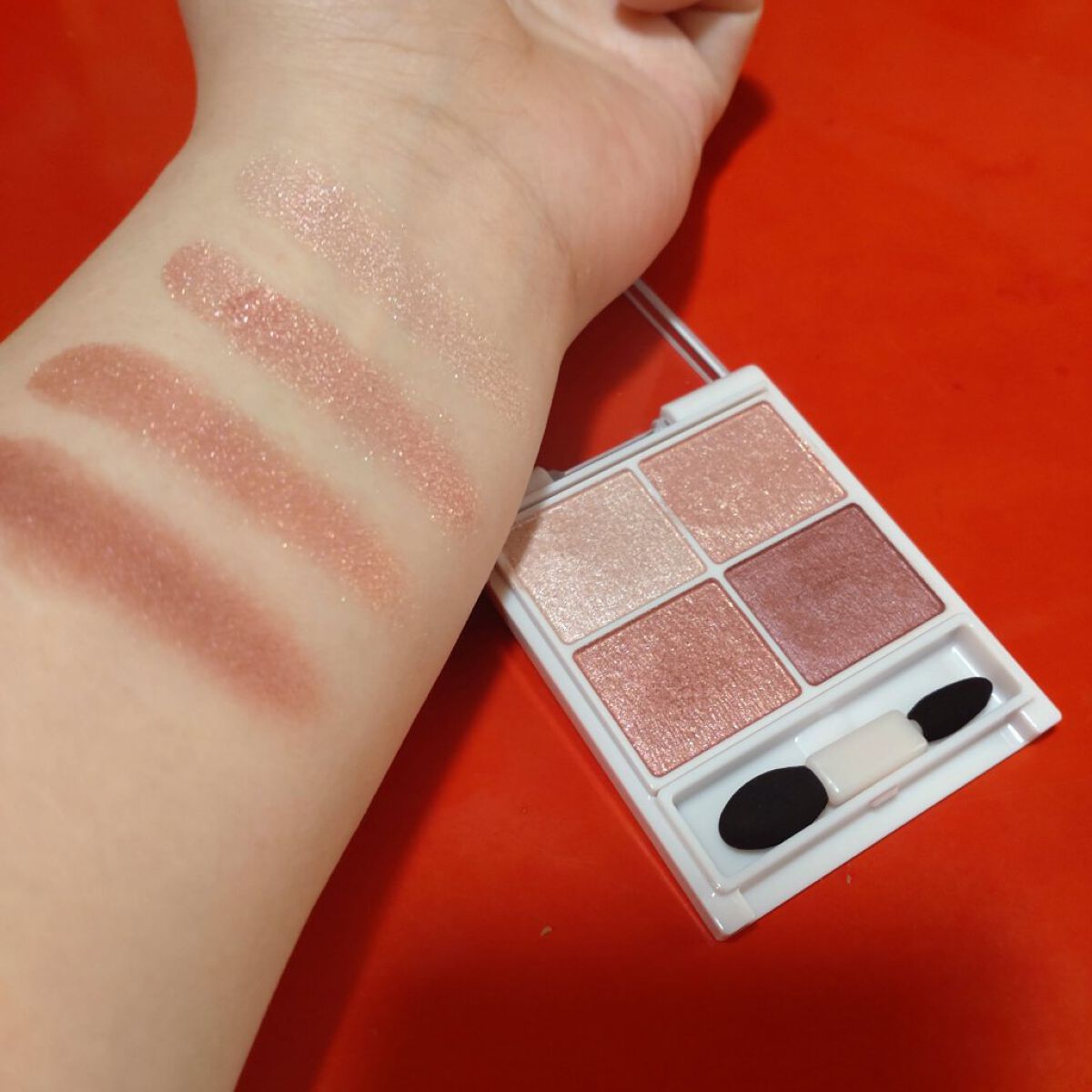 プチプラのクオリティじゃないっ!! 発売前からチェックしていたけれど、ここまで可愛いとは…😆 絶妙カラーで目もとのくすみを飛ばして*明るい印象に🩷 横割りグラデーションでメイクし、立体感をより出したかったので最後に1番左のカラーを上まぶたの真ん中と涙袋にのせています🙆 肌馴染みも良くて粉飛びも感じにくかったです💕 ブラウンの方も店頭に出てたら買おうかな💓
