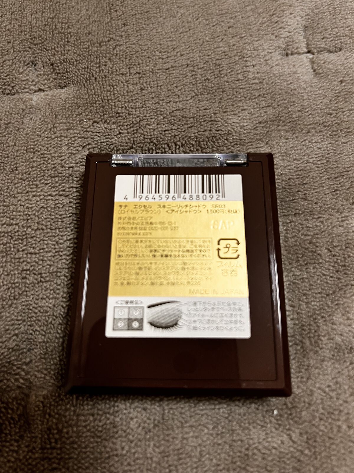 初めてのスキニーリッチシャドウ🫶 可愛い! しっとりした粉質で、粉飛びしにくかったです。 上段はツヤで、下段はパールがキラキラしているかな。SR03はほんのりピンクニュアンスとのことですが、私の肌だとピンクよりオレンジっぽく発色しました。 発色は濃すぎず、薄すぎず丁度いい感じ。 グラデーションをつくるのが簡単でした♡