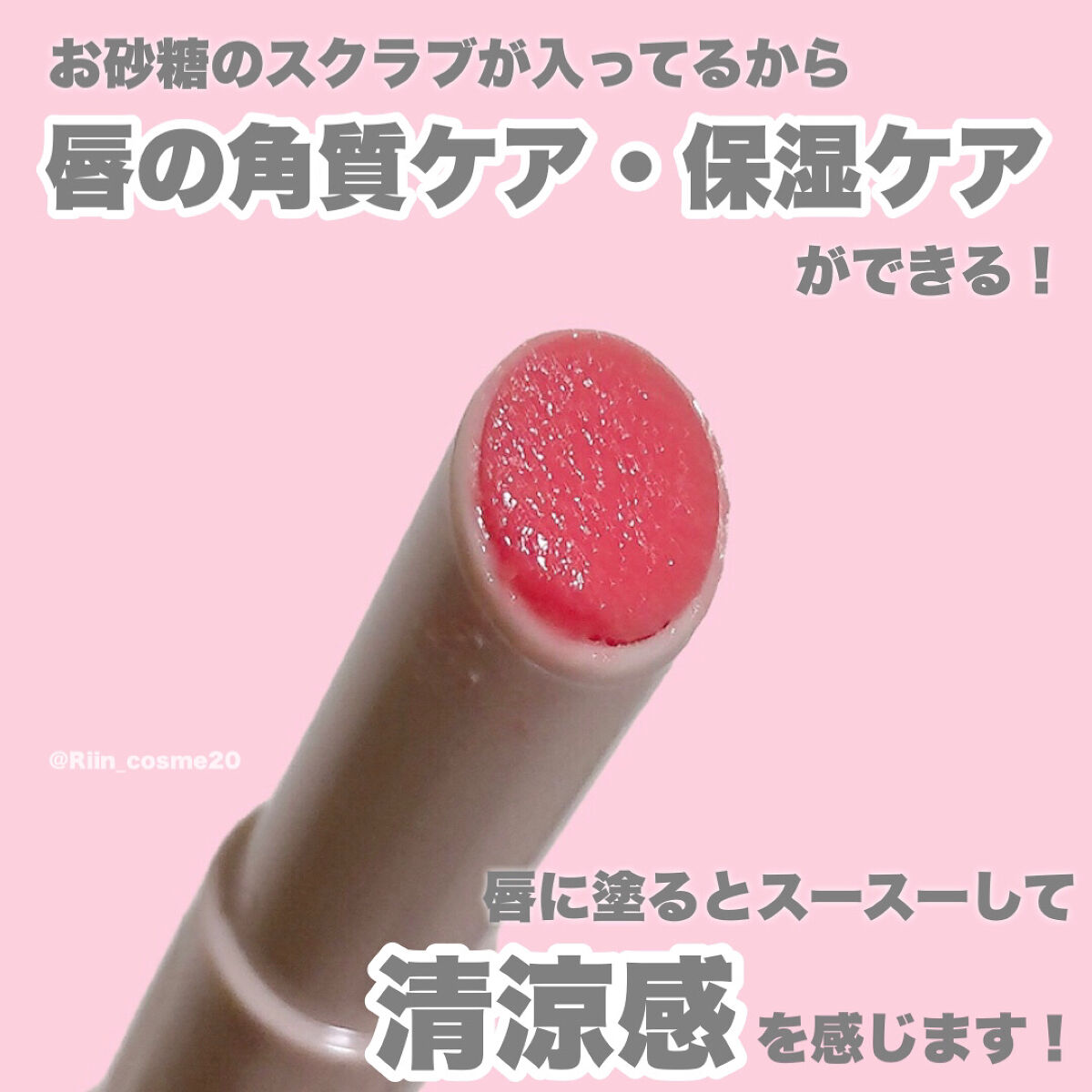 | 口紅・グロス・リップライナーランキング第14位 | スクラブが入っていて、ほんのり爽やかなシュガーミントの甘い香りくちびるの角質ケアができる リップバームです。 | 詳細を見る | |