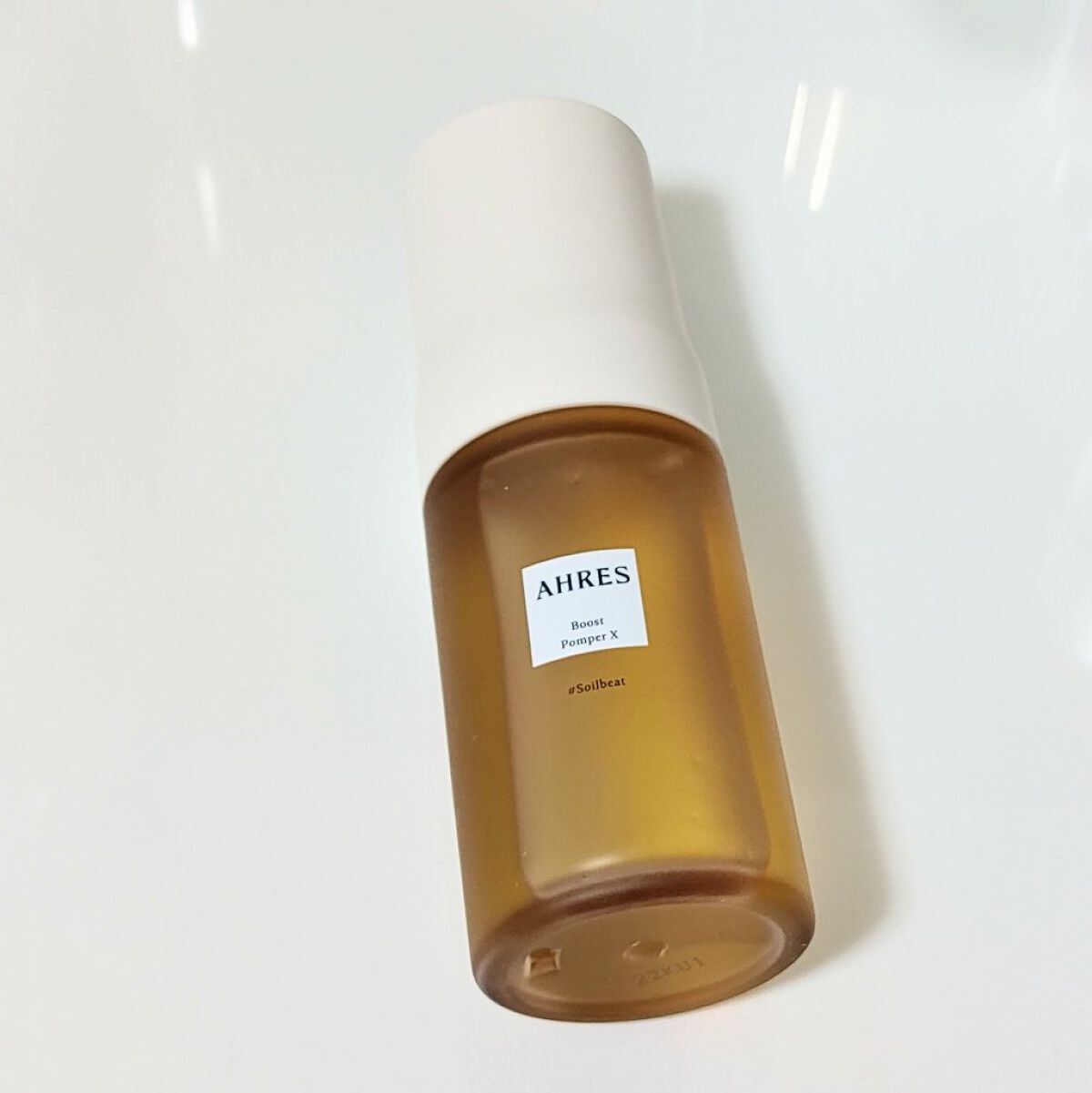AHRES(アーレス)ブーストポンパーX提供していただきました二層式の導入液です化粧水を使う前によく振って使います洗顔後に2.3滴なじませます美容液のようなうるおいを感じますポンプのように引き込むポンパーX機能TMが搭載されているそうですスク...