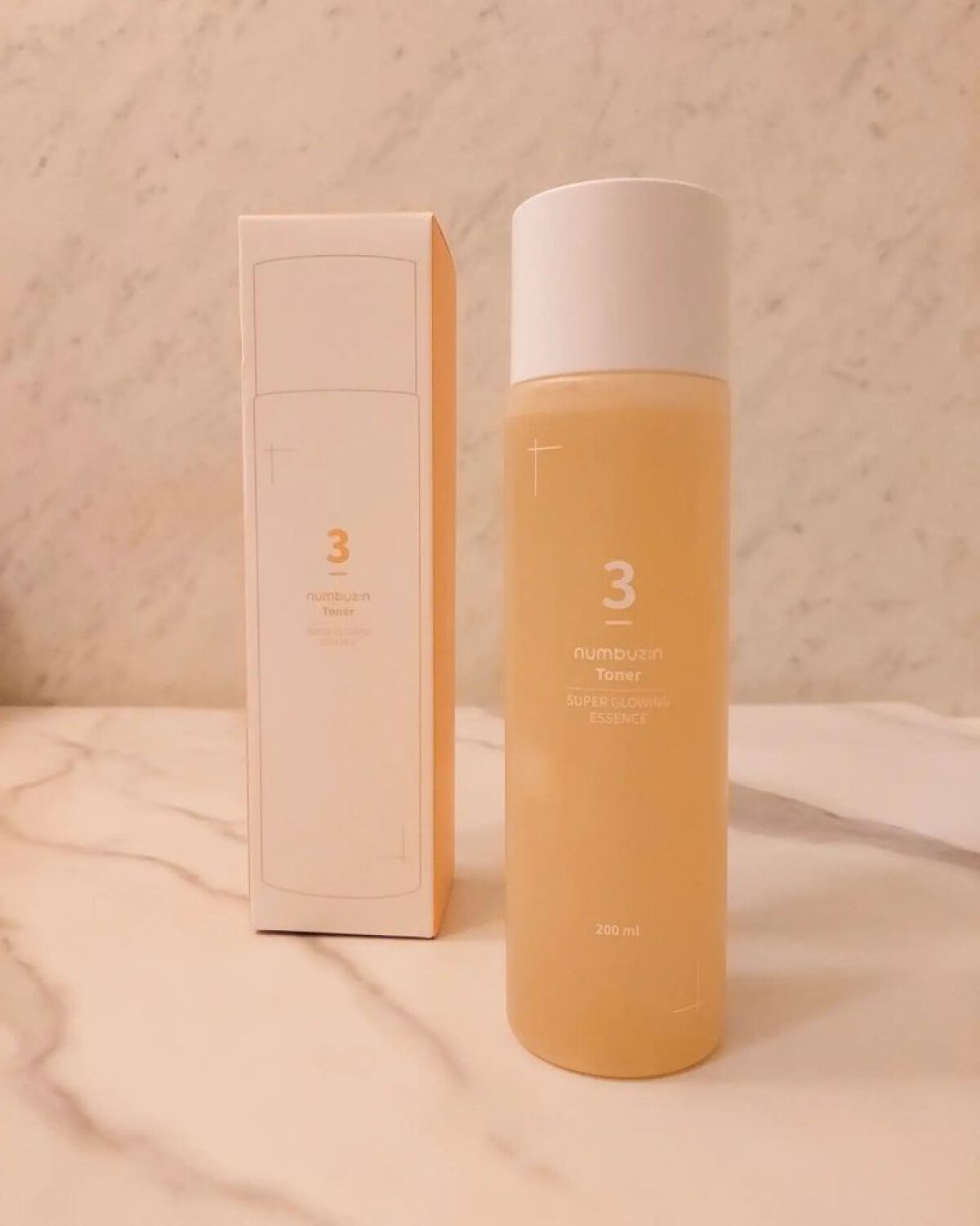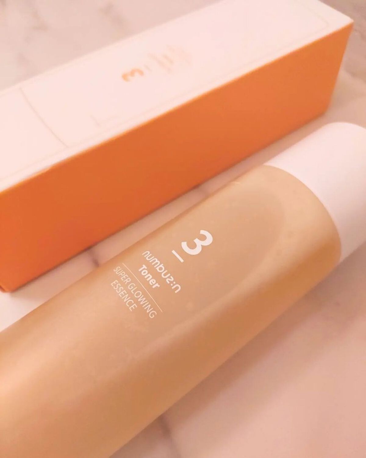 「ナンバーズイン 3番 うるツヤ発酵トナー」を使ってみました。表面と裏面が白色で、側面が鮮やかな黄色のパッケージでした。表面にトナーの絵が描かれているのが印象的でした。開けてみると、表面に描かれた形のトナーが出てきました。透明な黄色のボトルで...