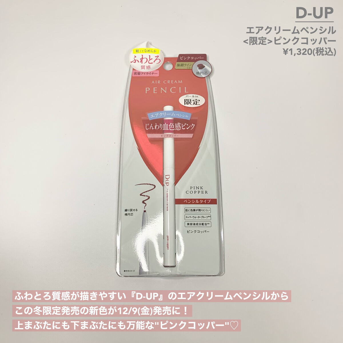 D-UPパーフェクトエクステンションマスカラルビーブラウン¥1,650エアクリームペンシルピーチブラウン¥1,320excelスキニーリッチシャドウSR10ピオニーブラウン¥1,650⋈・・・・・・・・・・・・・・・・・・・・・・・・・・・...