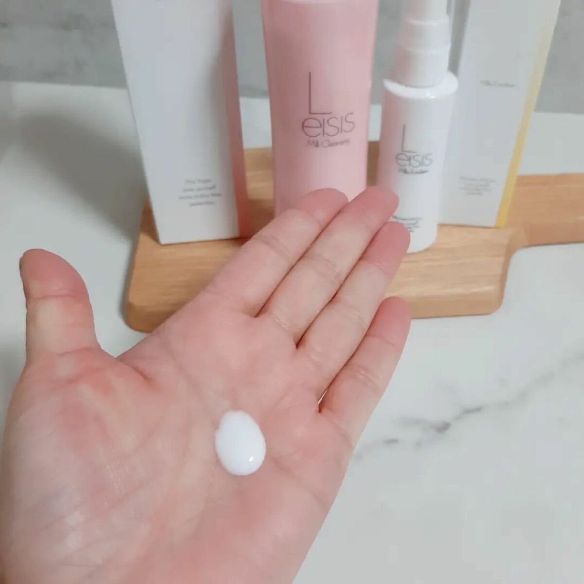 乳液はなめらかでしっかりうるおう 塗った後の肌は手触りサラサラ✨ クレンジングはミルクタイプ メイクと馴染みやすくてオイルに変化 角質も落としてくれるから さっぱり洗い上がる どちらもフローラルのいい香り。JILL STUARTみたいな香り🥰